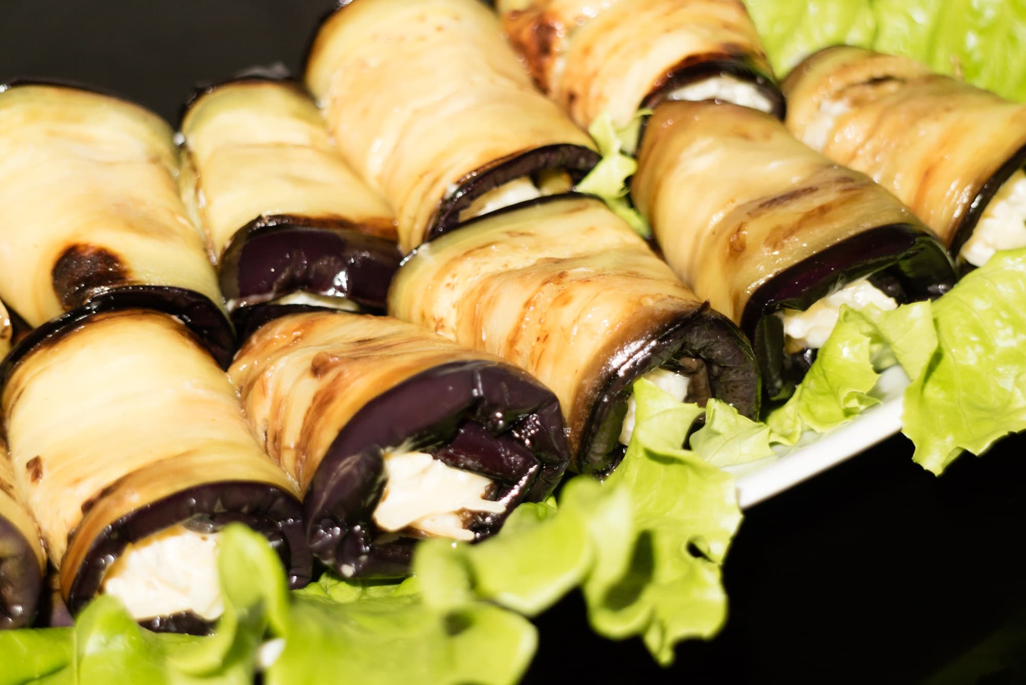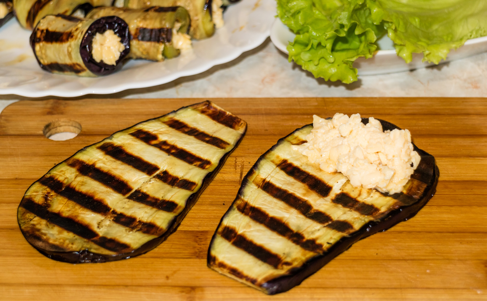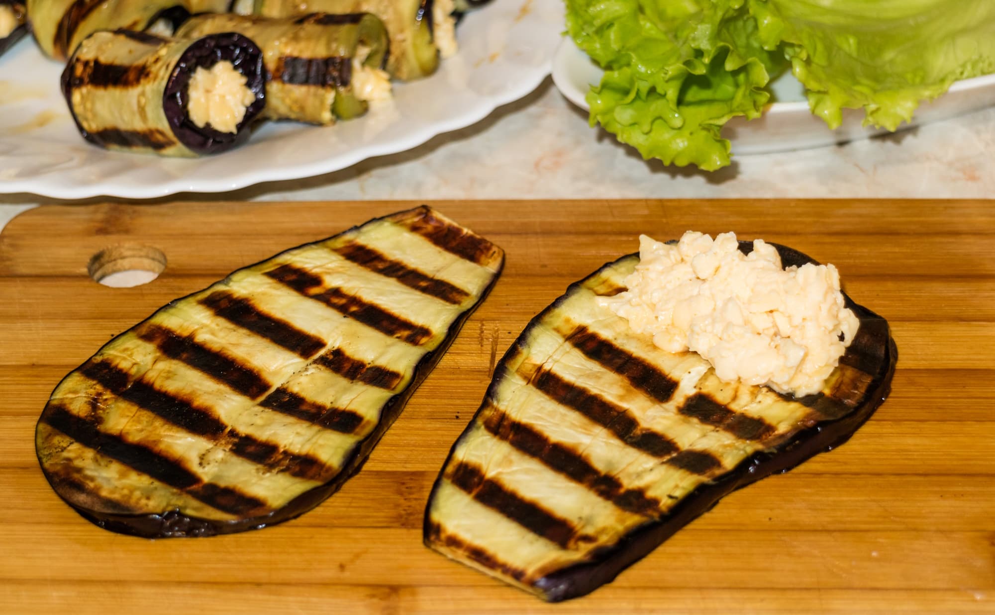 Контактный гриль — отличное устройство и для жарки тонких ломтиков баклажанов для рулетиков: процесс идет быстро, ломтики не успевают впитать слишком много масла. Экспериментируя во время тестирования гриля De’Longhi CGH1012D, мы выбрали температуру 220 °C и продолжительность жарки 6 минут. При таких параметрах получился отличный результат.