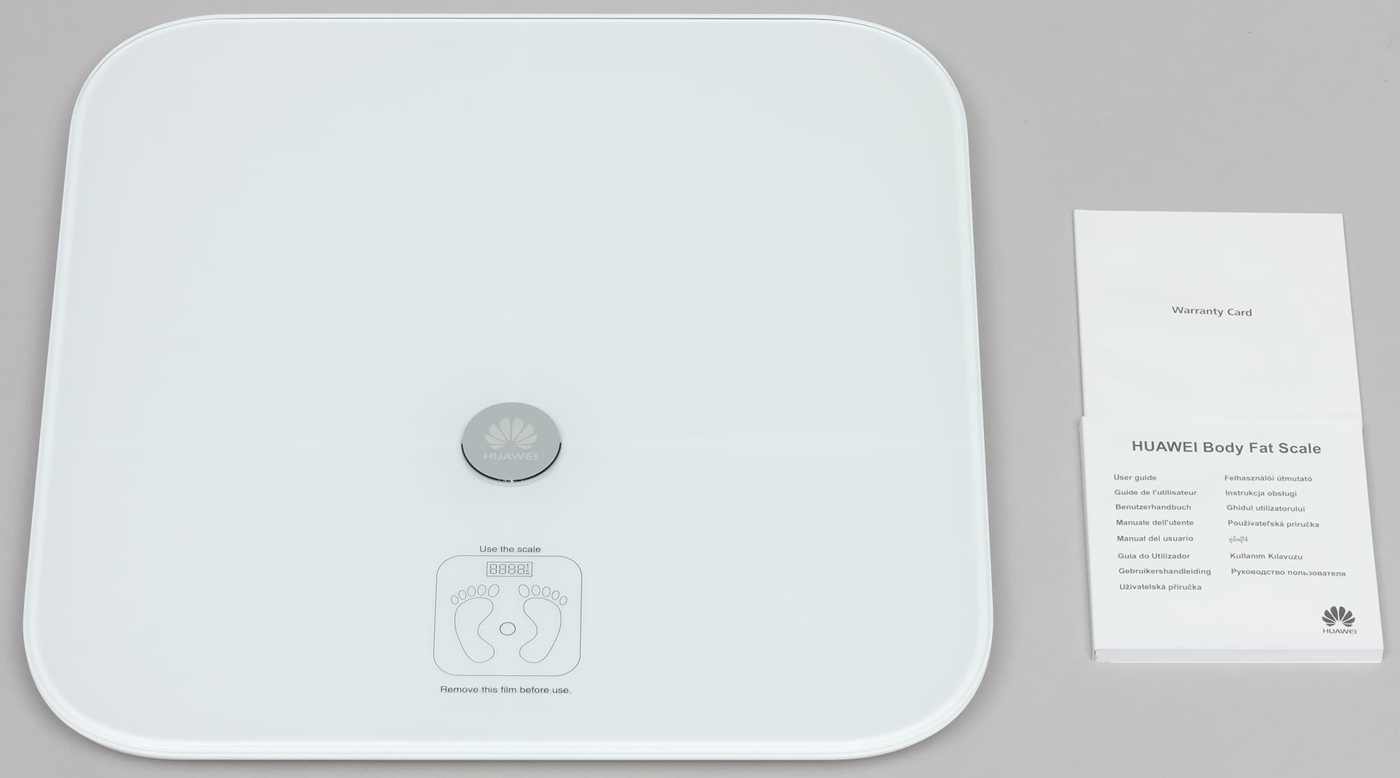 Внутри бокса кроме самих весов — только гарантийный талон и буклет-руководство пользователя (есть в нем страницы и на русском языке).