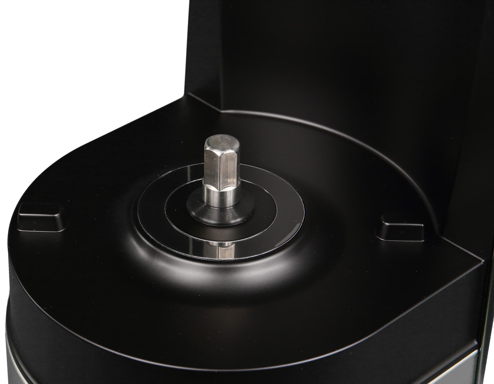 Начнем, конечно, с корпуса. Моторный блок практически полностью выполнен из нержавеющей стали. Остальные элементы сделаны из черного матового пластика. Снизу можно увидеть наклейку с серийным номером устройства, резиновые ножки и отверстие для вентиляции.