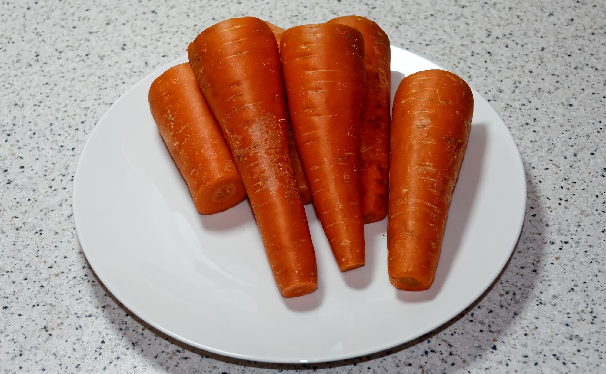 Морковь мы очистили, разрезали на четыре половины вдоль, затем — поперек. Вес чистого и подготовленного продукта составляет все тот же один килограмм.
