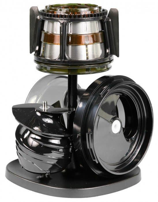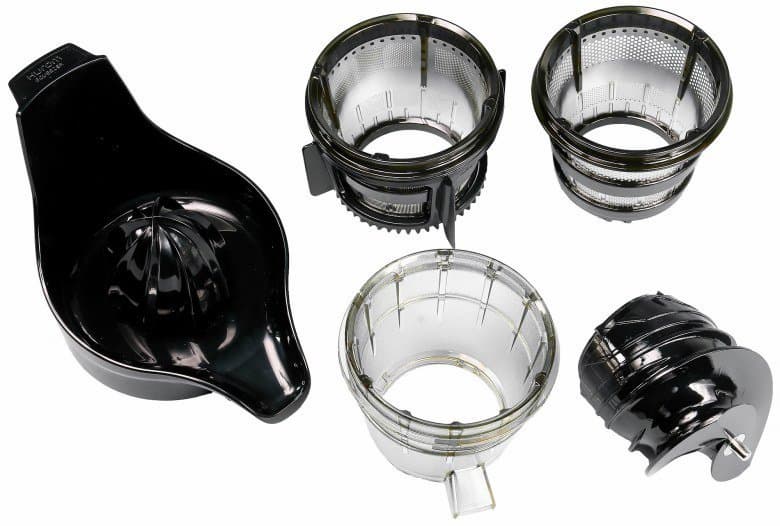 Сменные сетки для соков с мякотью получили повышенное количество точек фиксации (восемь против четырех у соковыжималок прошлого поколения). Обе сетки выполнены из хирургической нержавеющей стали AISI 304 и залиты специальным сверхпрочным, химически нейтральным материалом GE-Ultem, напоминающей по своей структуре керамику. Производитель даже предоставляет двухлетнюю гарантию на все не электрические комплектующие части соковыжималки.