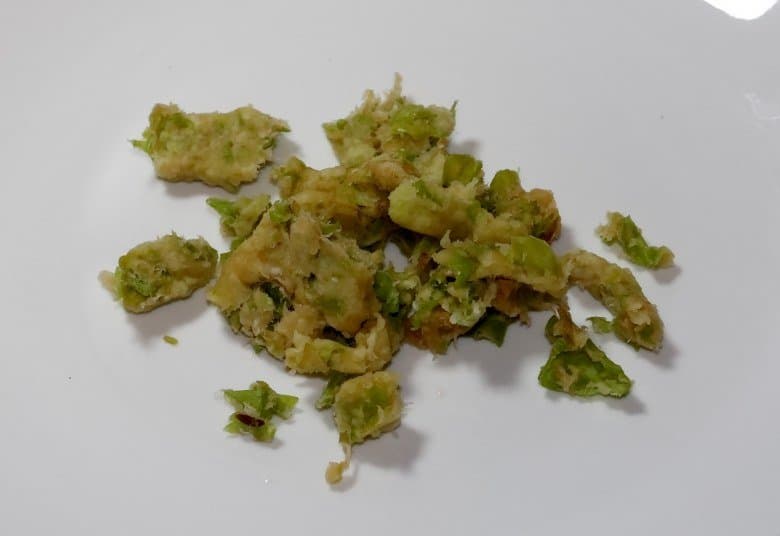 В процессе отжима количество жмыха оказалось невелико, он оказался абсолютно сухой и представлял собой спрессованные кусочки кожуры и косточек.