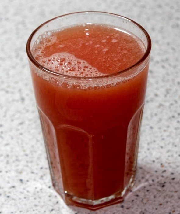 Результатом стало 250 мл освежающего напитка, богатого витамином А, улучшающего зрение и укрепляющего иммунитет (по заявлению составителя книги рецептов).