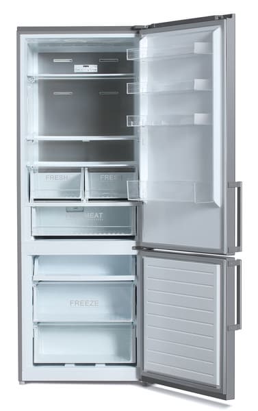 В холодильном отделении три открытых полки, два отдельных ящика для овощей и фруктов, расположенных параллельно и один, самый нижний — для свежих продуктов.