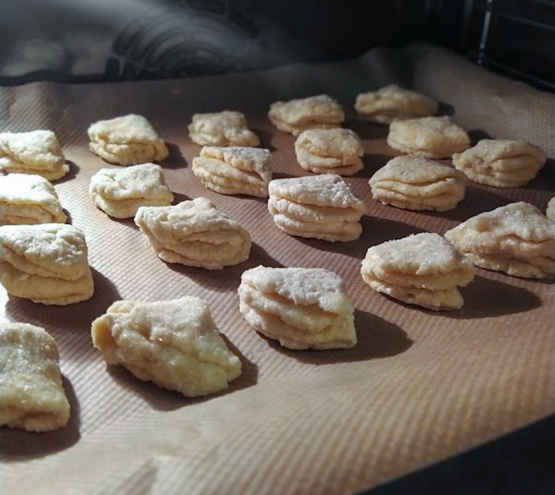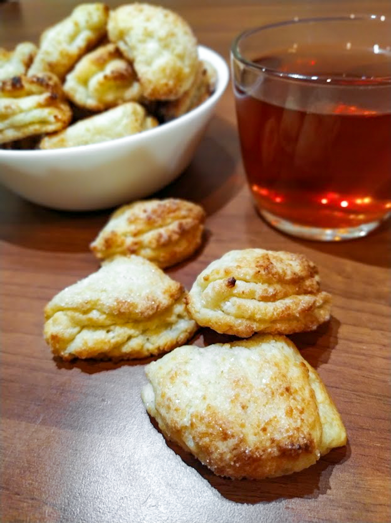 Не самая удачная наша работа с точки зрения эстетики, но как же вкусно: снаружи карамелизовавшийся сахар, внутри — воздушное, идеально пропеченное тесто. Очень опасное печенье: сколько испечешь, столько и съешь, оторваться невозможно.