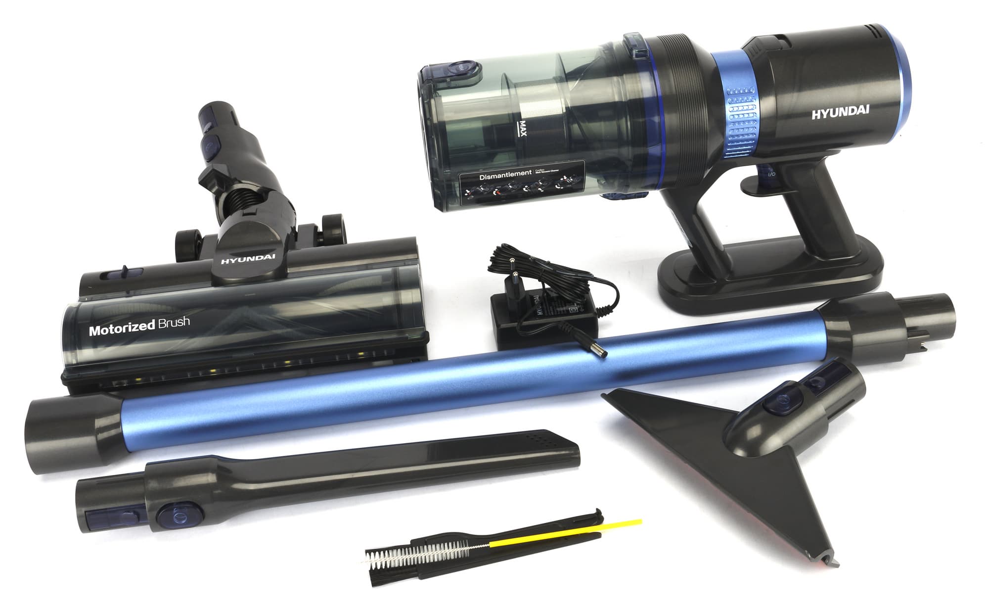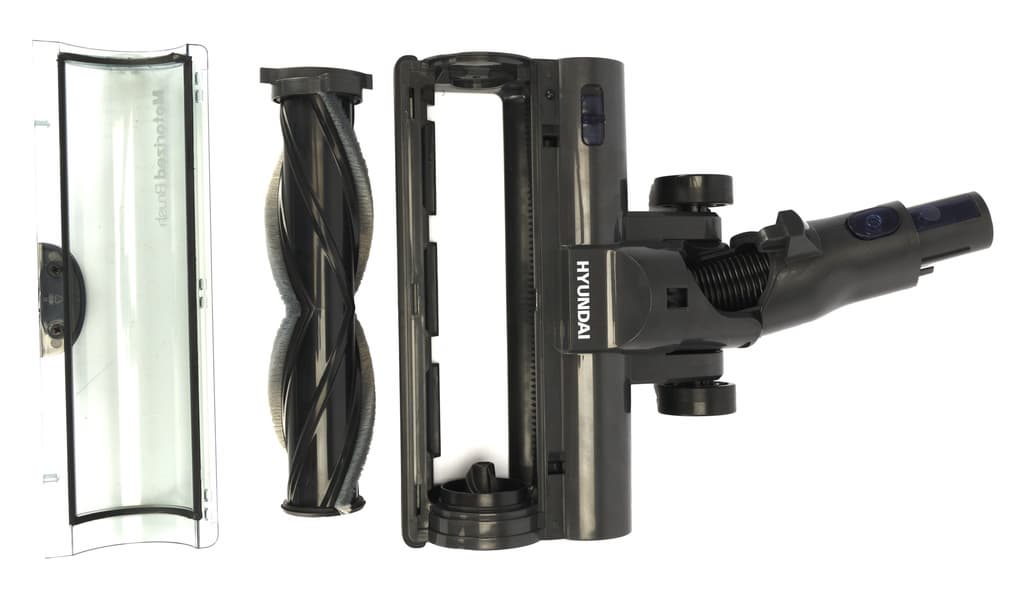 Комплектация у Hyundai HYV-S7970 минималистична: вместе с пылесосом поставляются всего три насадки, включая электрощетку для пола. Не нашли мы в коробке и никаких расходников.