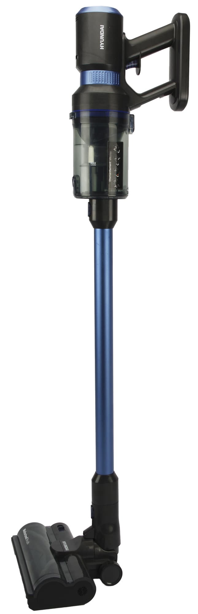 Вертикальный аккумуляторный пылесос Hyundai HYV-S7970 понравился нам удачным соотношением мощности и продолжительности автономной работы: на минимуме оборотов он обеспечивает длительную уборку, а на максимальной скорости — неплохую мощность. У него невысокий уровень шума, не слишком большой вес и удобное управление.
