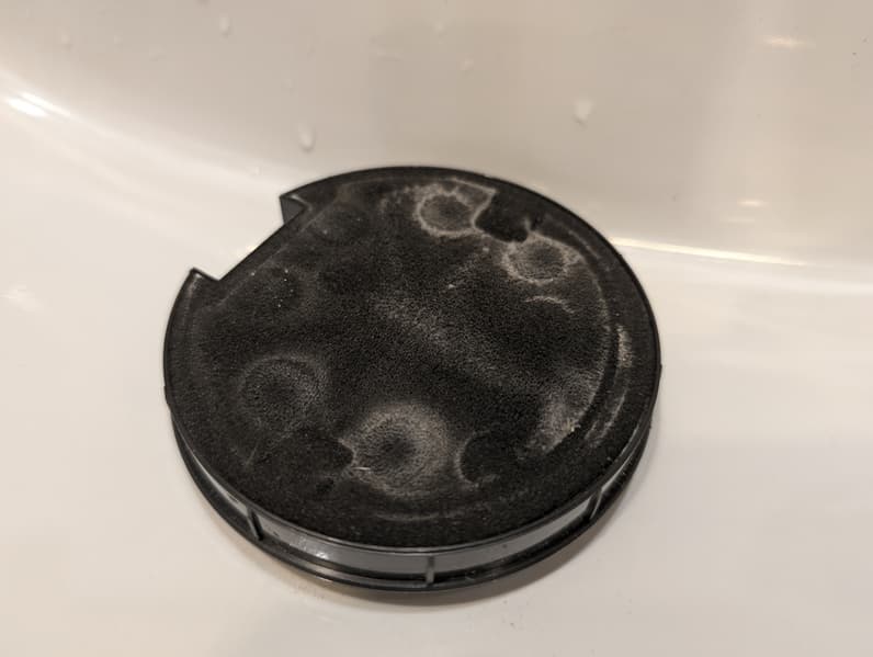 Заметная часть мелкой пыли задерживается в толще поролонового диска: на наружной поверхности ее немного.
