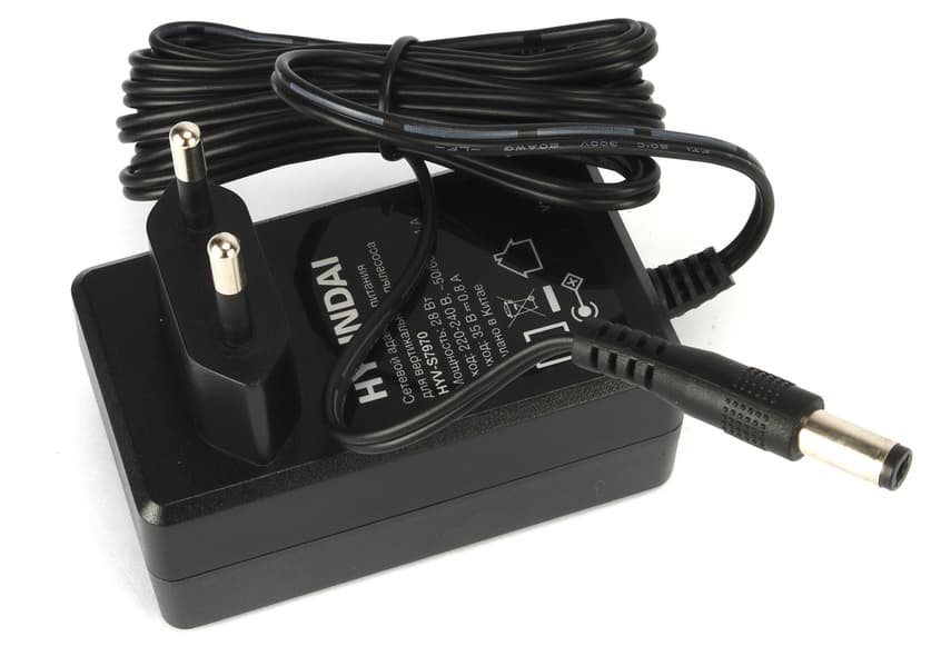 В комплекте есть и адаптер постоянного тока (35 В, 0,8 А). Характеристики источника питания позволяют надеяться, что зарядка аккумулятора с его помощью не будет слишком долгой.