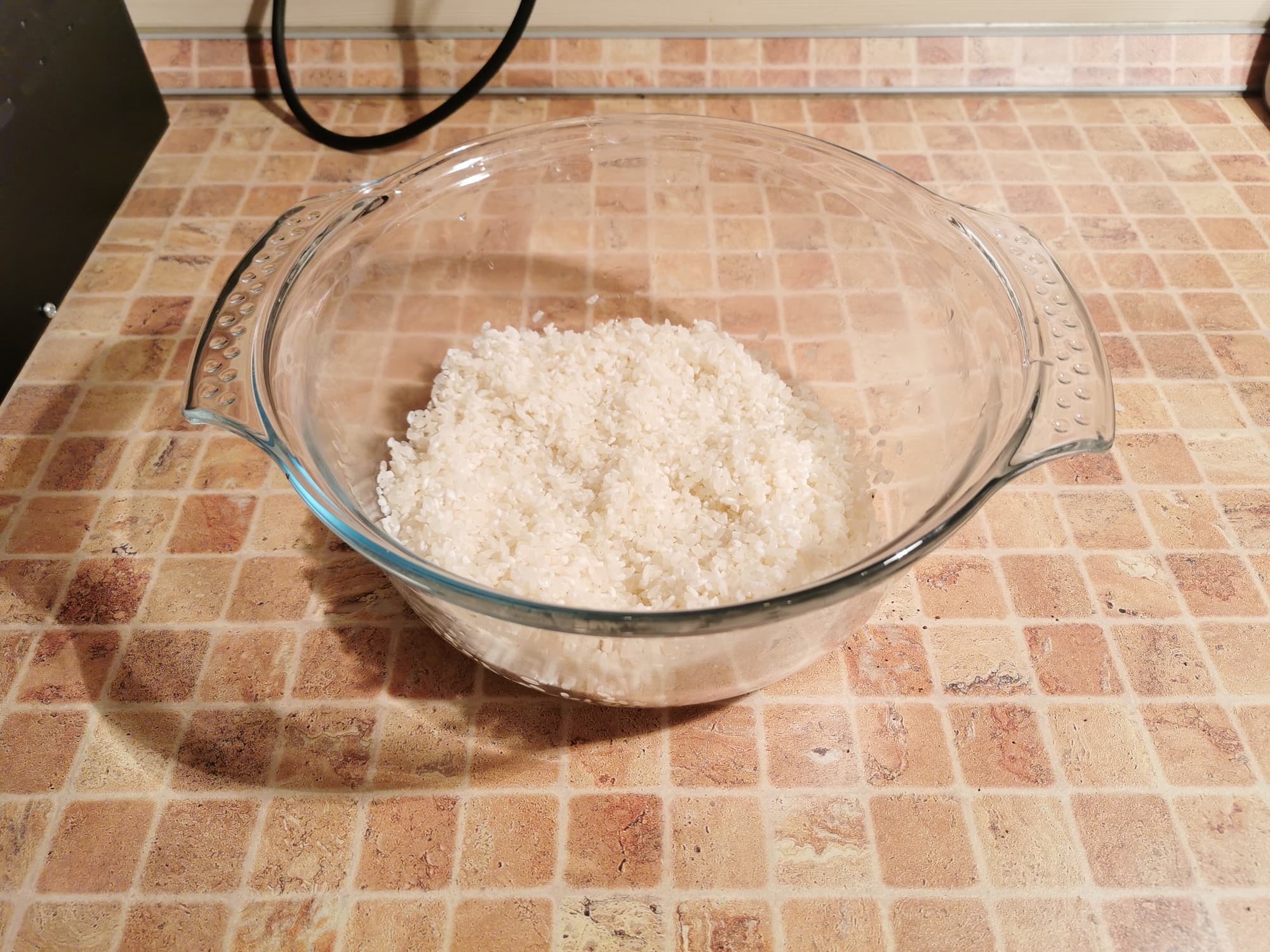 Рис мы промыли и поместили в жаропрочную стеклянную форму.