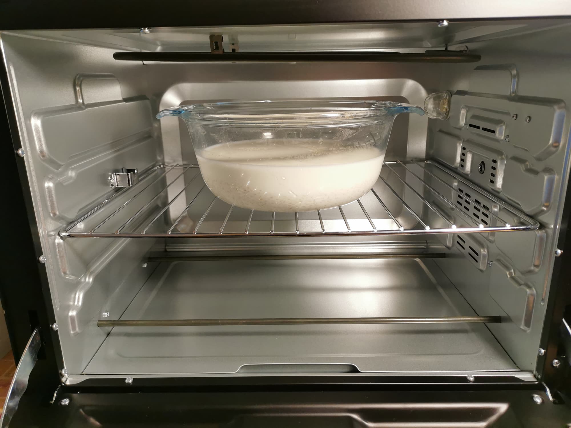 После чего добавили в два раза больше молока и насыпали сверху щепотку соли.