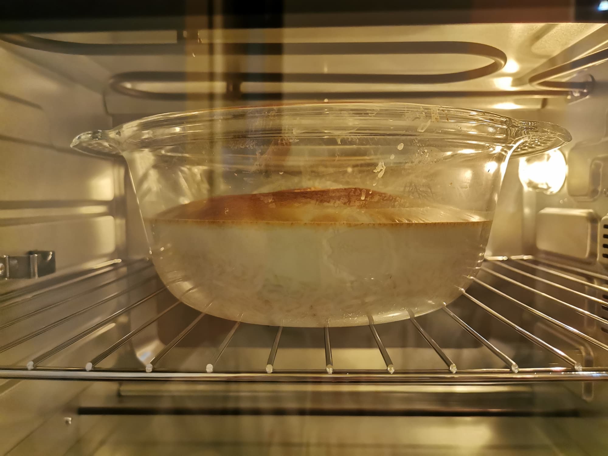 Форму поместили в не разогретую духовку, установили температуру 230 °C и режим нагрева сверху и снизу.