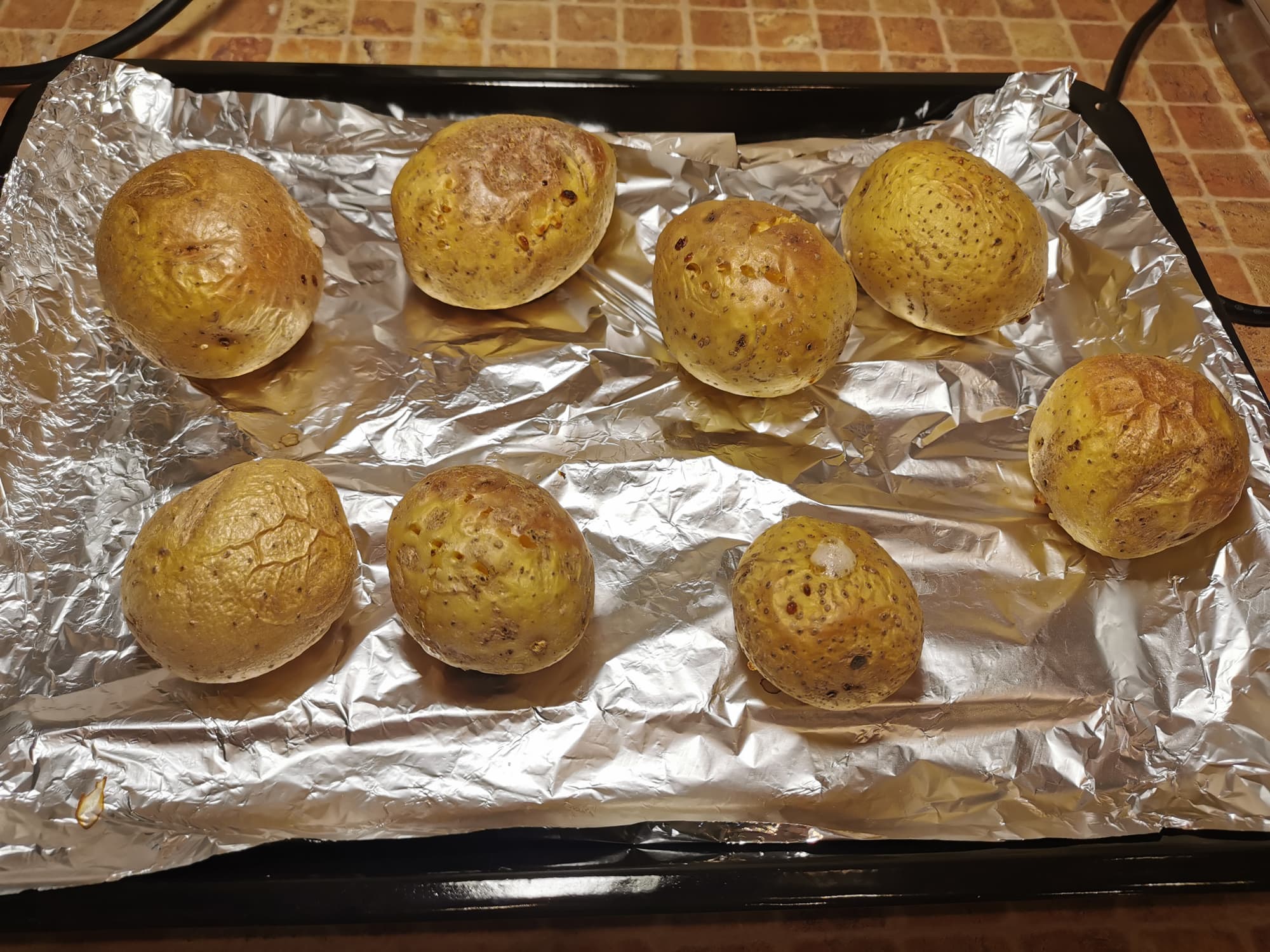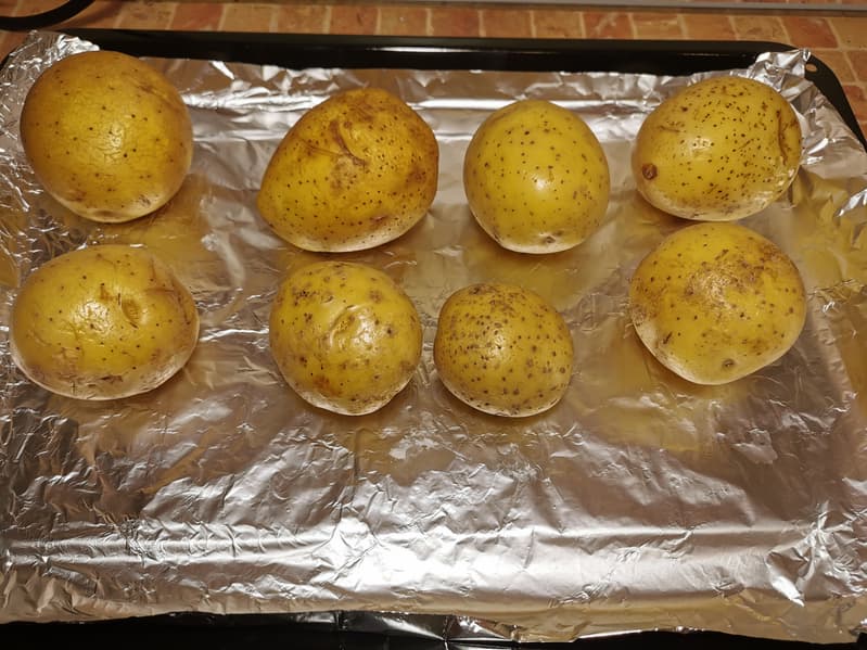 Спустя 50 минут мы достали наши картофелины и увидели, что конвекция отлично справилась со своей задачей, так как мы выложили корнеплоды разных размеров, но тем не менее они все отлично пропеклись.