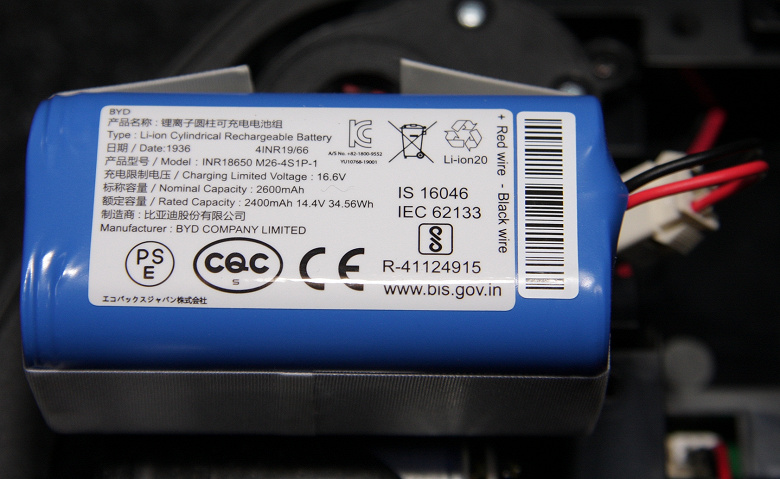 В данном роботе установлена литий-ионная аккумуляторная батарея. Батарейный блок составлен из четырех цилиндрических элементов популярного типоразмера 18650. Сборка из элементов и защитного контроллера стянута термоусаживающейся трубкой.
