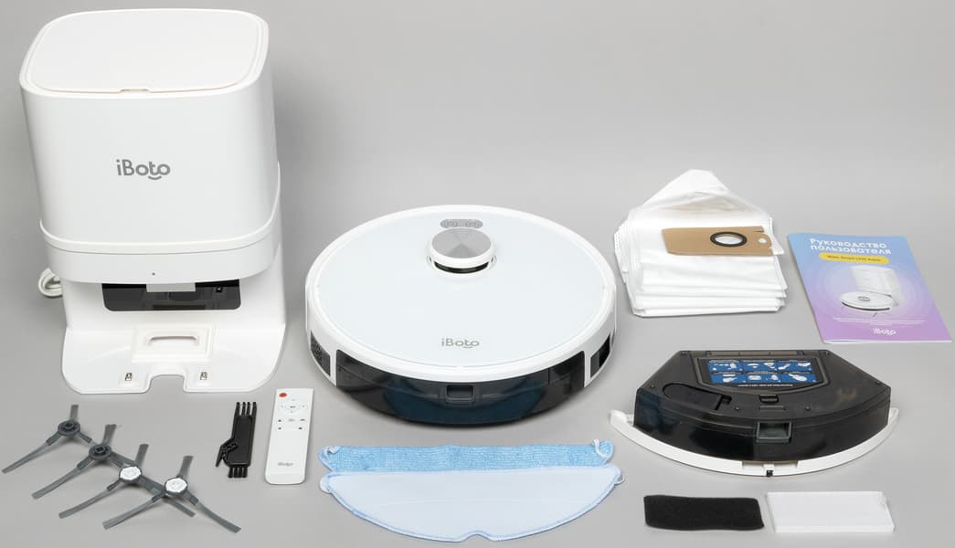 Набор аксессуаров у iBoto Smart L925 Aqua обычный. Количество дополнительных расходников и аксессуаров достаточное, хотя мы не отказались бы от двух-трех лишних салфеток для влажной уборки.