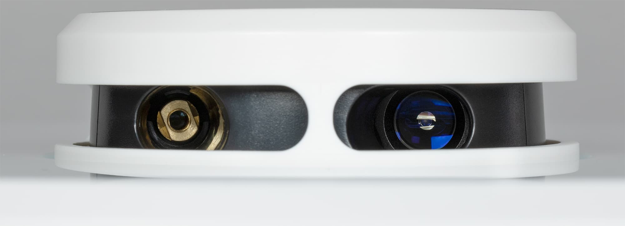 Ниже стекла бампера приклеена полоса пористого материала, предназначенная для защиты прибора и мебели при столкновениях.