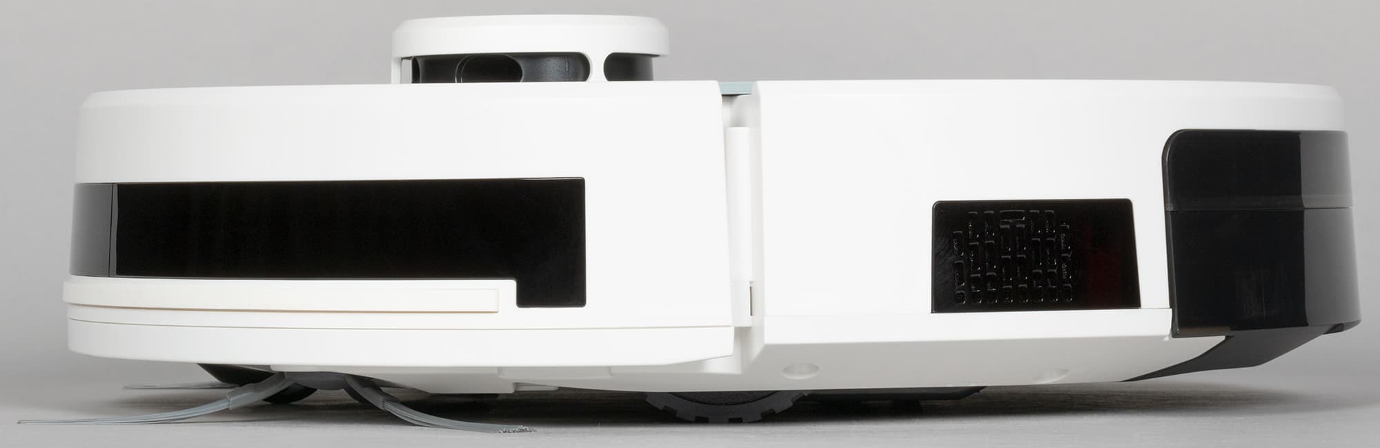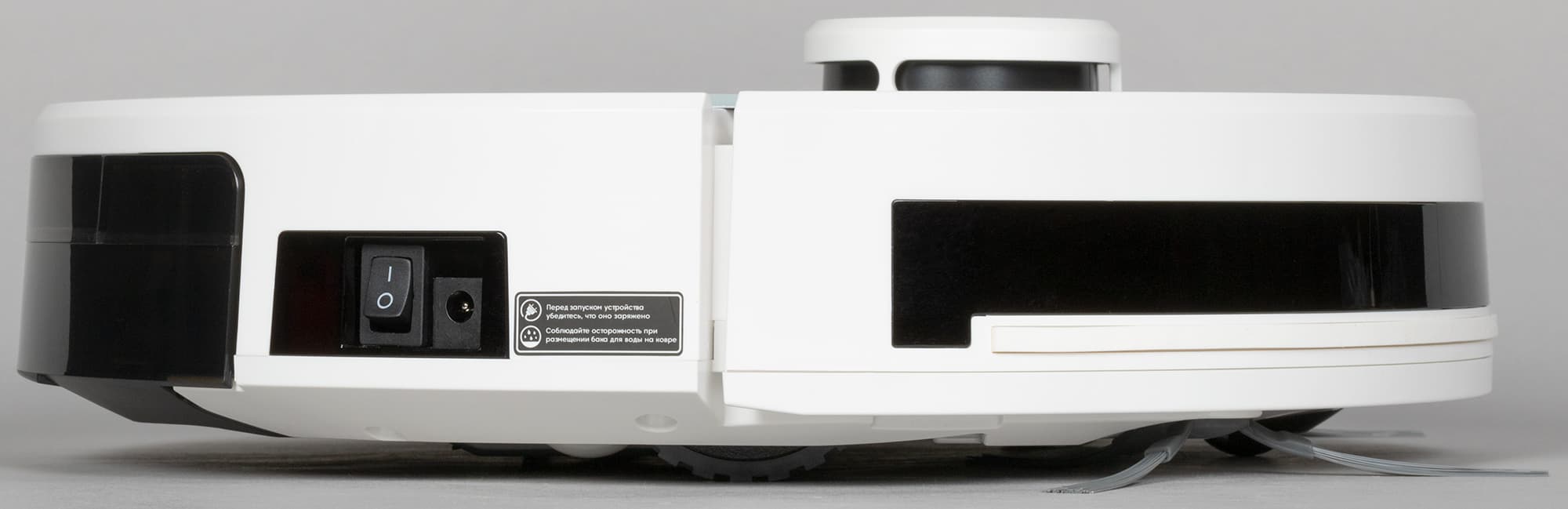 Оживляет верхнюю панель и выступающая башенка лидара — основного органа ориентации. В ней вращается цилиндр с лазерным излучателем и фотоприемником: с их помощью пылесос строит трехмерную картину помещения и определяет расстояние до препятствий.