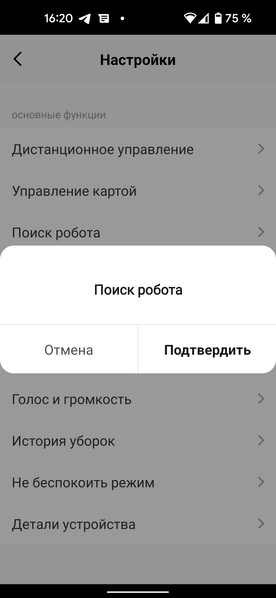 Функция «Поиск робота» заставляет потерявшийся в помещении пылесос подать голос.