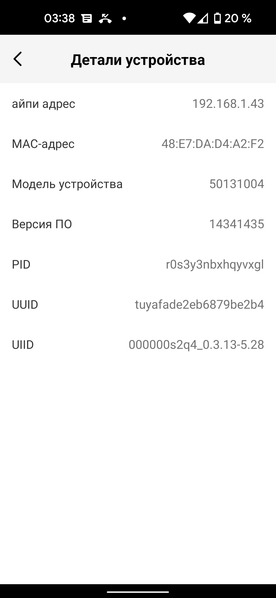 В разделе «Детали устройства» можно ознакомиться с информацией о сетевом подключении, узнать версию прошивки прибора и другие технические подробности.