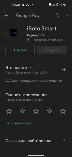 Для управления прибором производитель предлагает приложение iBoto Smart, уже знакомое нам по предыдущим обзорам. Его рейтинг на момент создания обзора — 2,6 из 5, количество установок — более 5000).