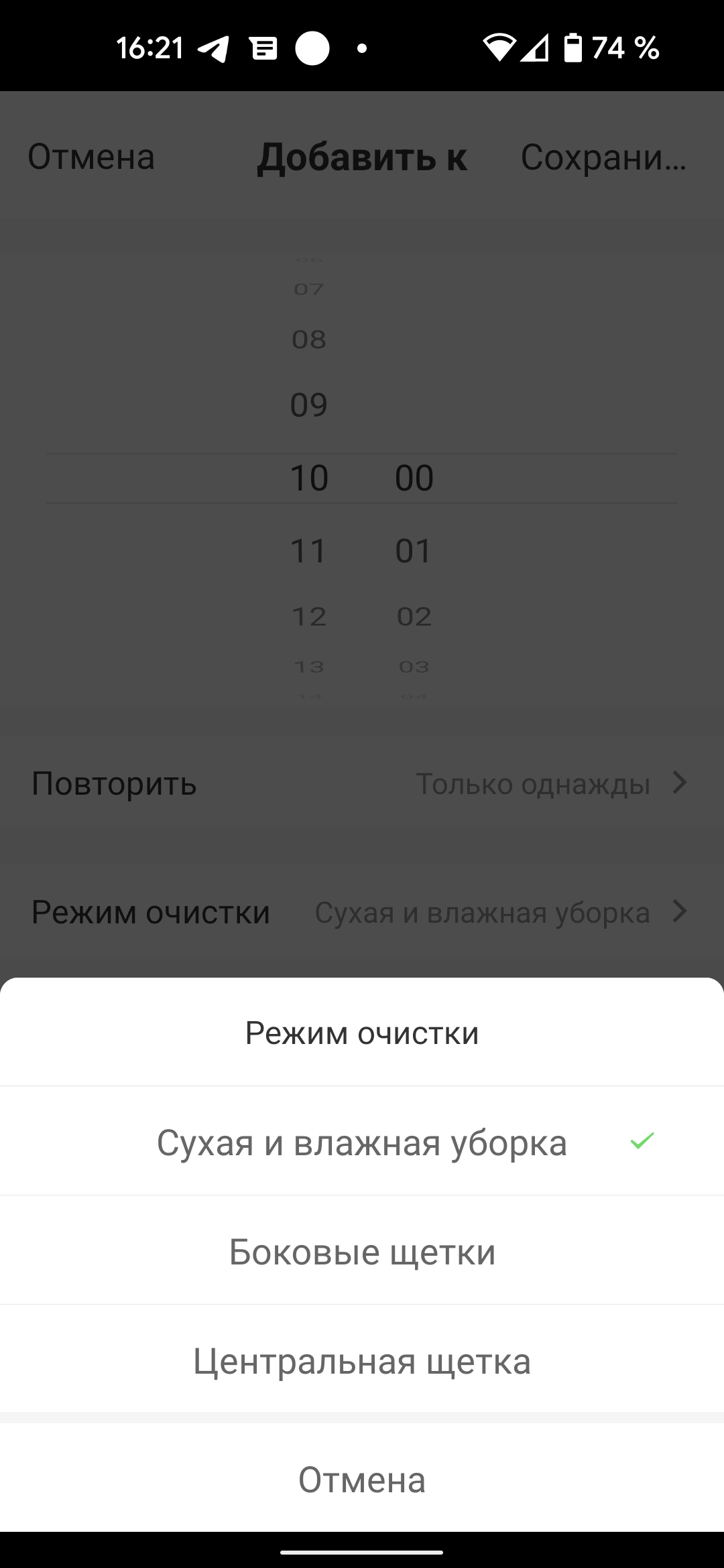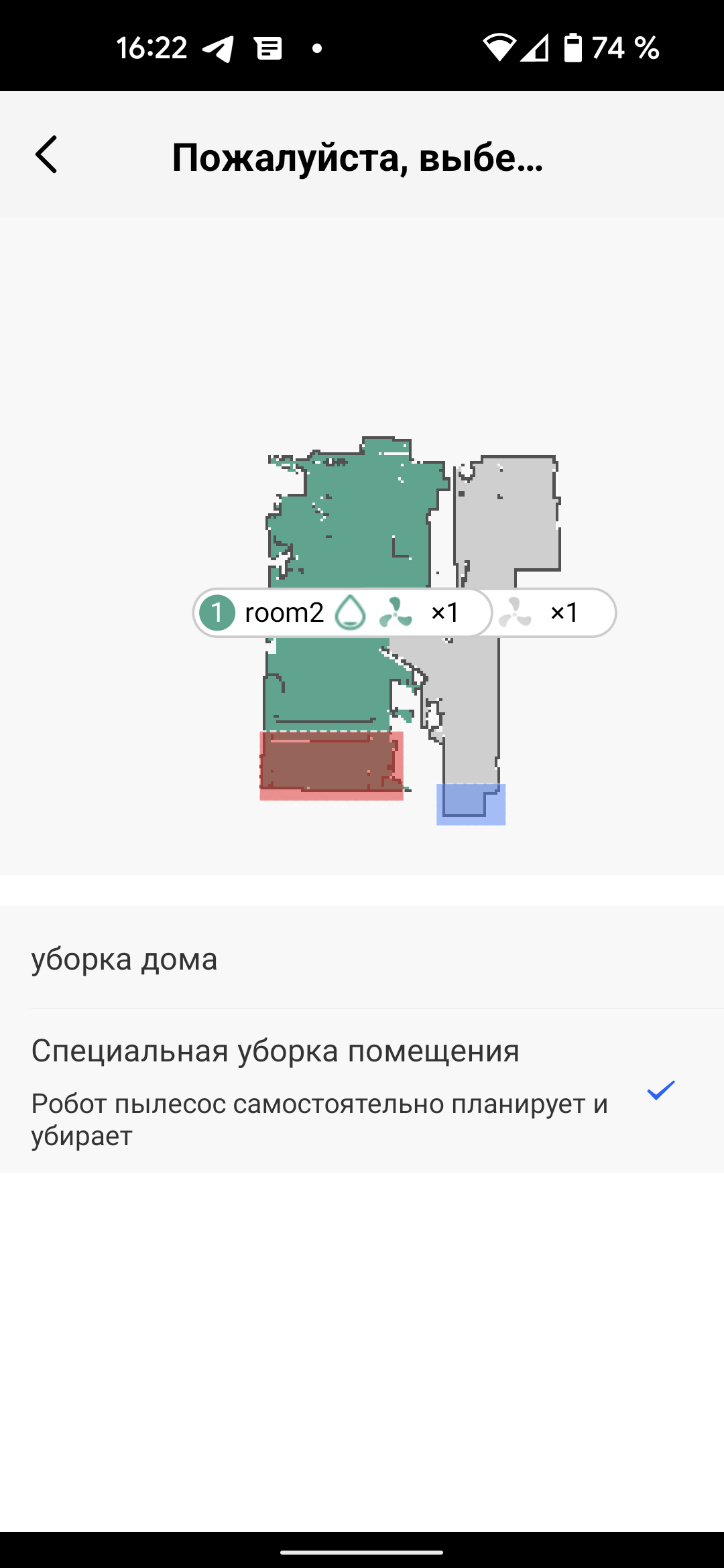 Приложение позволяет также провести уборку в заданном помещении — немедленно или по расписанию.
