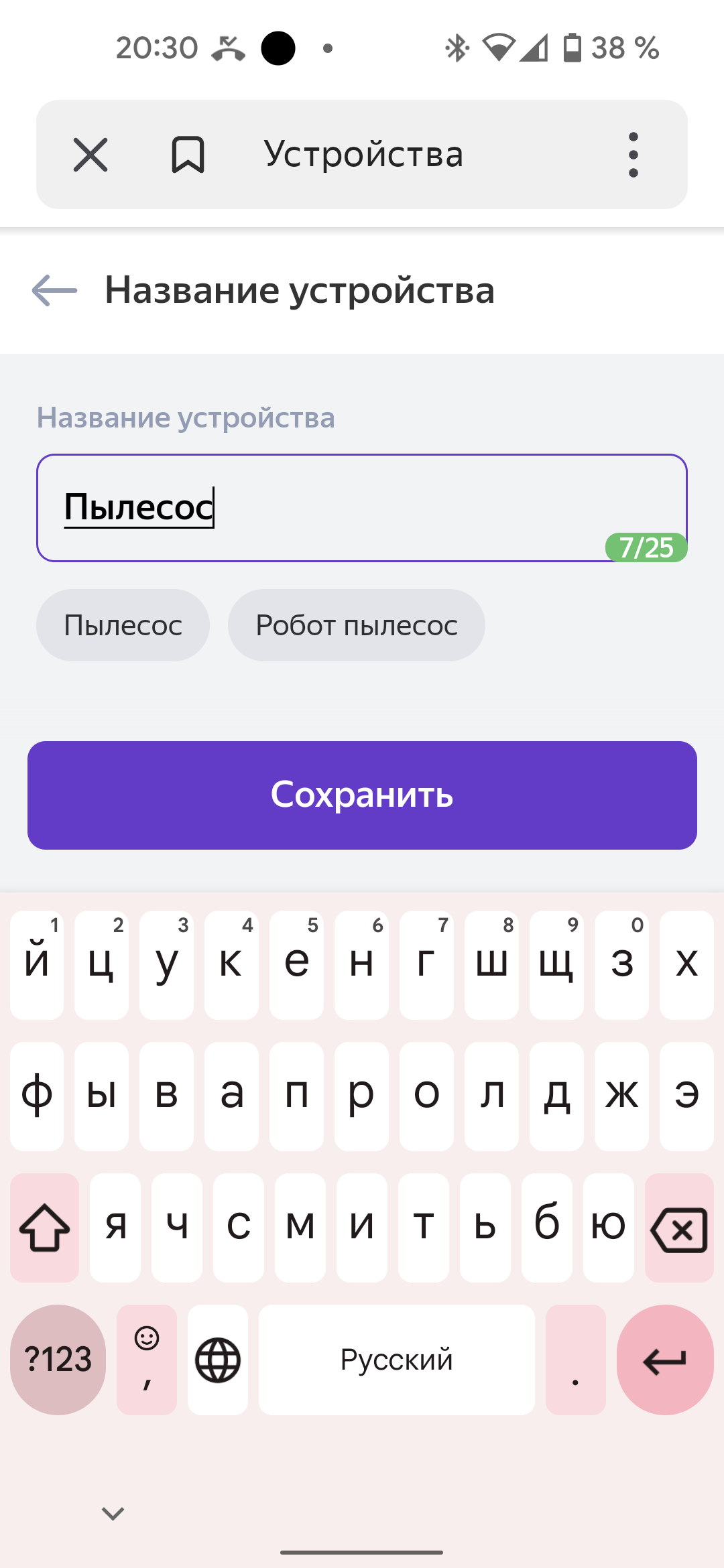 После успешного подключения плагина нужно выбрать помещение, в котором будет работать пылесос, и назвать его (рекомендуется использовать кириллицу).