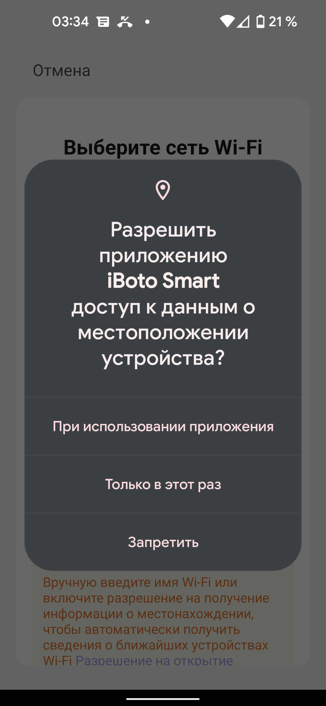 Воспользовавшись кнопкой «добавить устройство», мы без труда нашли iBoto Smart L925 Aqua в списке поддерживаемых роботов-пылесосов и перешли к процедуре синхронизации.