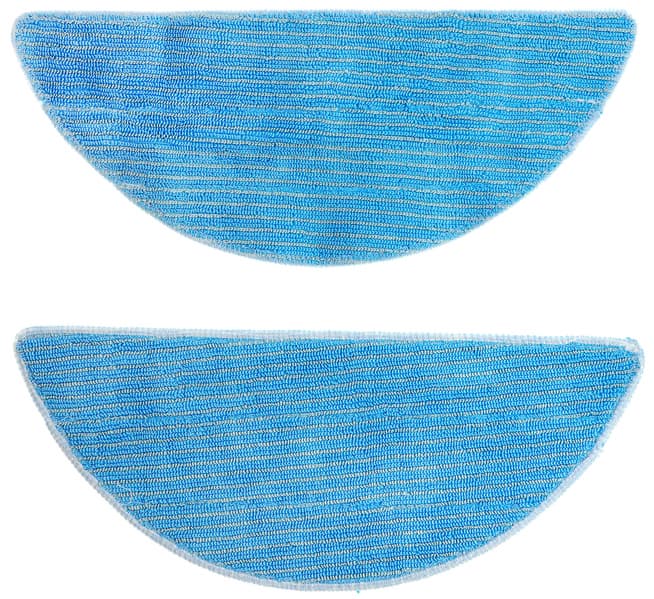 В комплект входят две тряпки для влажной уборки. Они сделаны из голубой микрофибры и закрепляются в задней части нижней панели при помощи липучек.