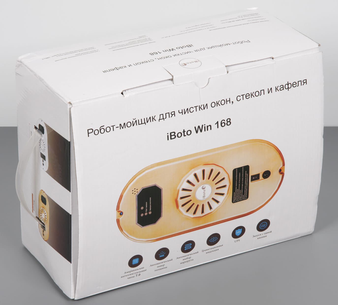 Это не совсем обычный робот, который может перемещаться по вертикальным поверхностям, одновременно протирая их сухой или влажной салфеткой. iBoto Win 168 умеет работать в автоматическом режиме, самостоятельно останавливаясь по завершении уборки доступной ему площади, также есть и режим с ручным управлением. Предназначен робот в первую очередь для мытья окон, стекла которых ограничены оконной рамой.