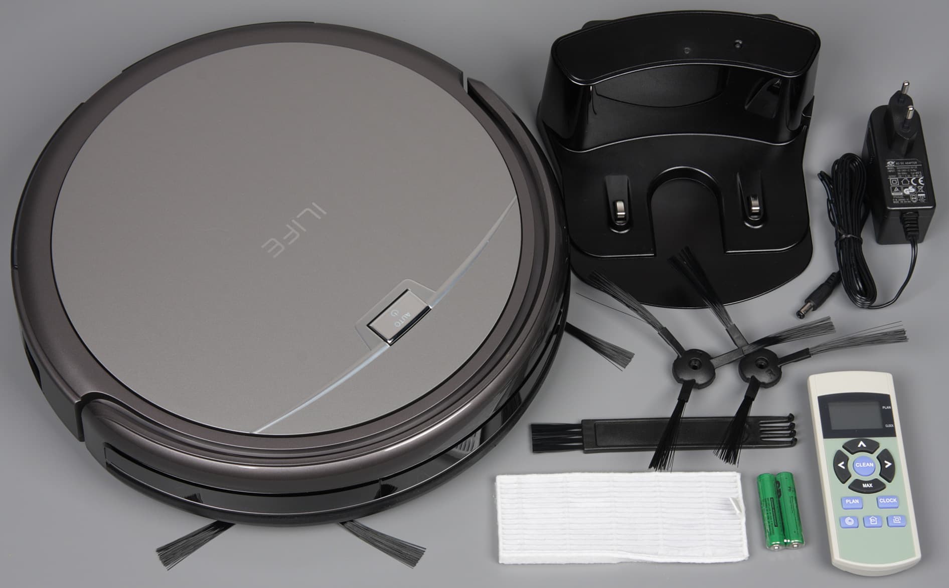 Комплектацию все трех роботов скудной не назовешь, так как есть и пульт ДУ, и инструмент для очистки, и запасные расходные материалы (фильтрующие элементы и салфетки), и запчасти (боковые щеточки), но все же она различается. Меньше всего «лишнего» досталось iLife A4: