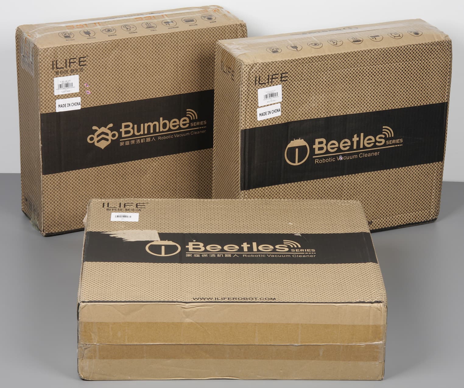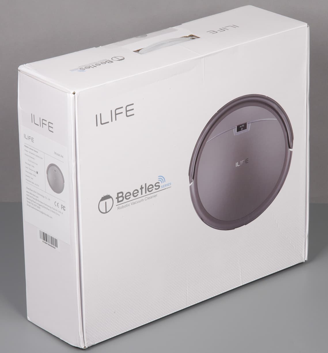 К моменту написания этой статьи в iXBT.com уже было протестировано несколько роботов-пылесосов под марками iLife и другими, конструкция которых аналогична или очень близка к тому, как устроены рассматриваемые модели iLife A4, V7 и X5. Отличия в основном в комплектации и оформлении корпуса роботов. Поэтому позволим себе несильно углубляться в детали. Роботы iLife упакованы в две коробки — внешняя защитная из толстого гофркартона, и внутренняя из картона потоньше и уже с ручкой. Внешняя коробка предохраняет от повреждений в следствие неизбежного неаккуратного обращения во время пересылки. При этом чуть вскрыв внешнюю коробку сверху, можно вытащить пластиковую ручку внутренней коробки, чтобы с комфортом донести приобретение до дома.