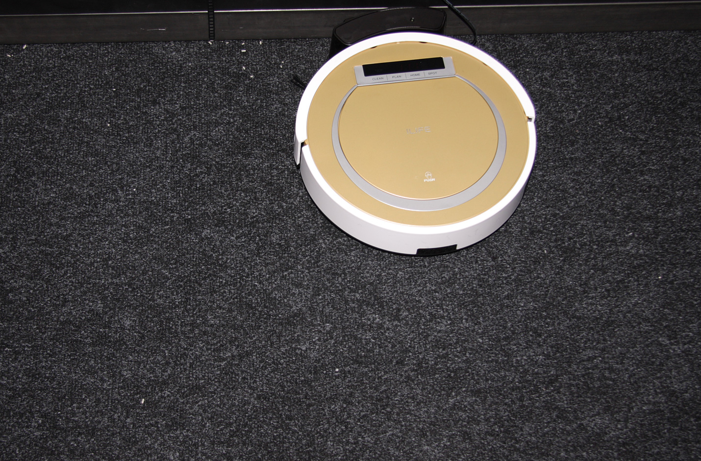 Видео ниже снято с одной точки с почти полным охватом убираемой территории, база находится внизу по центру, при обработке часть видеоряда ускорена в десять раз, показаны только начало уборки (первые 10 минут). Робот iLife A4: