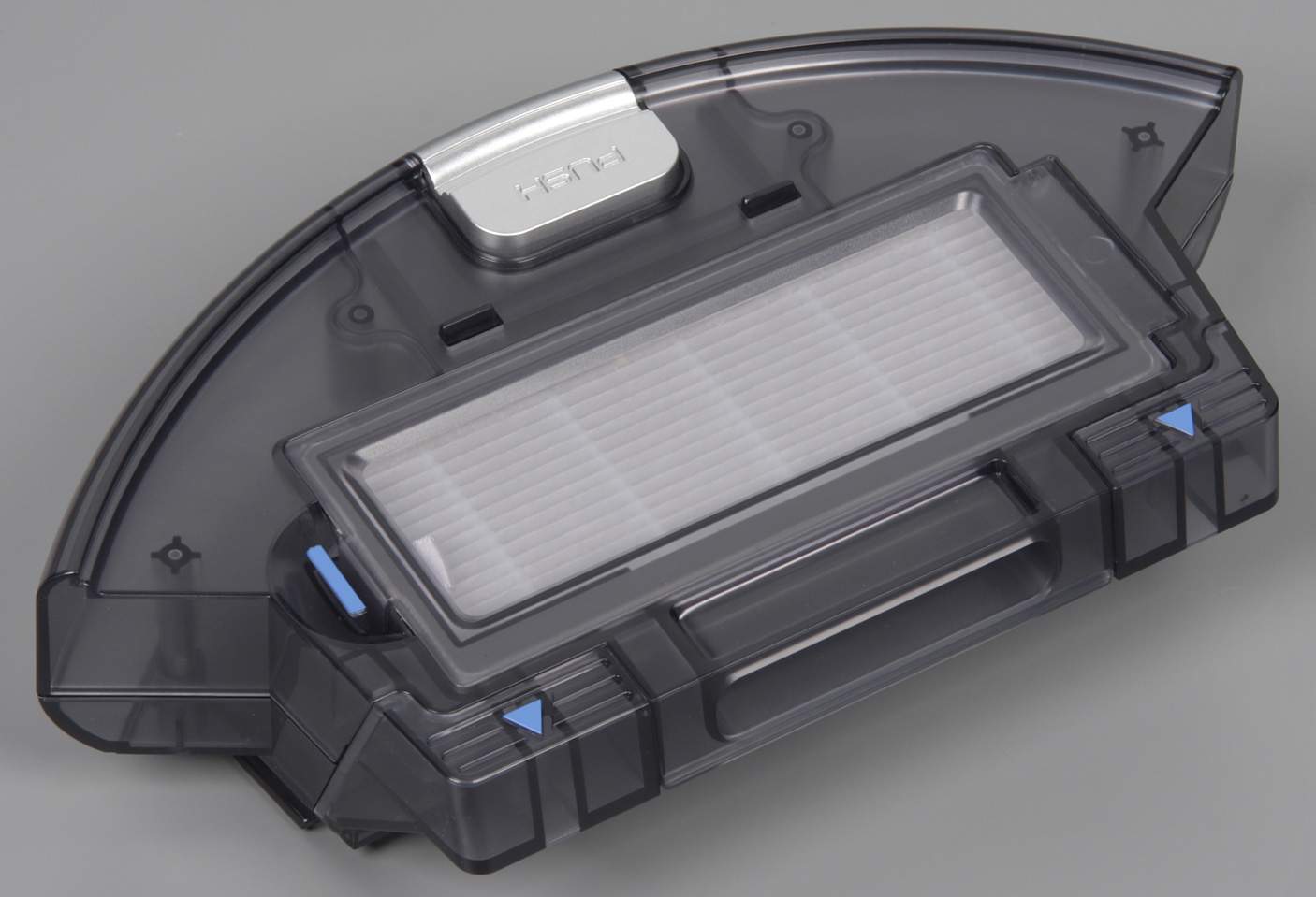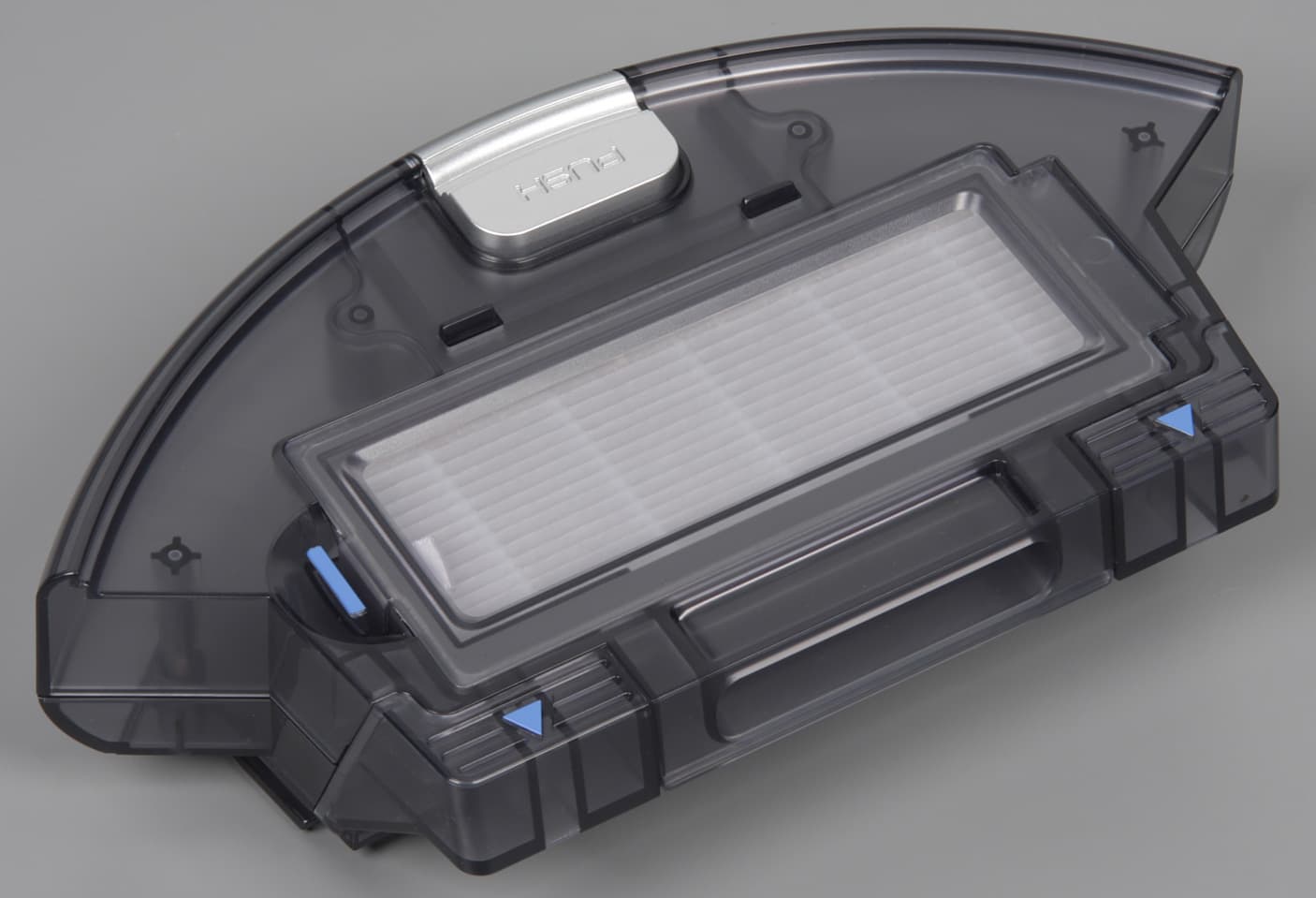 Нажав на фиксатор сзади, можно отсоединить пылесборник от корпуса робота.