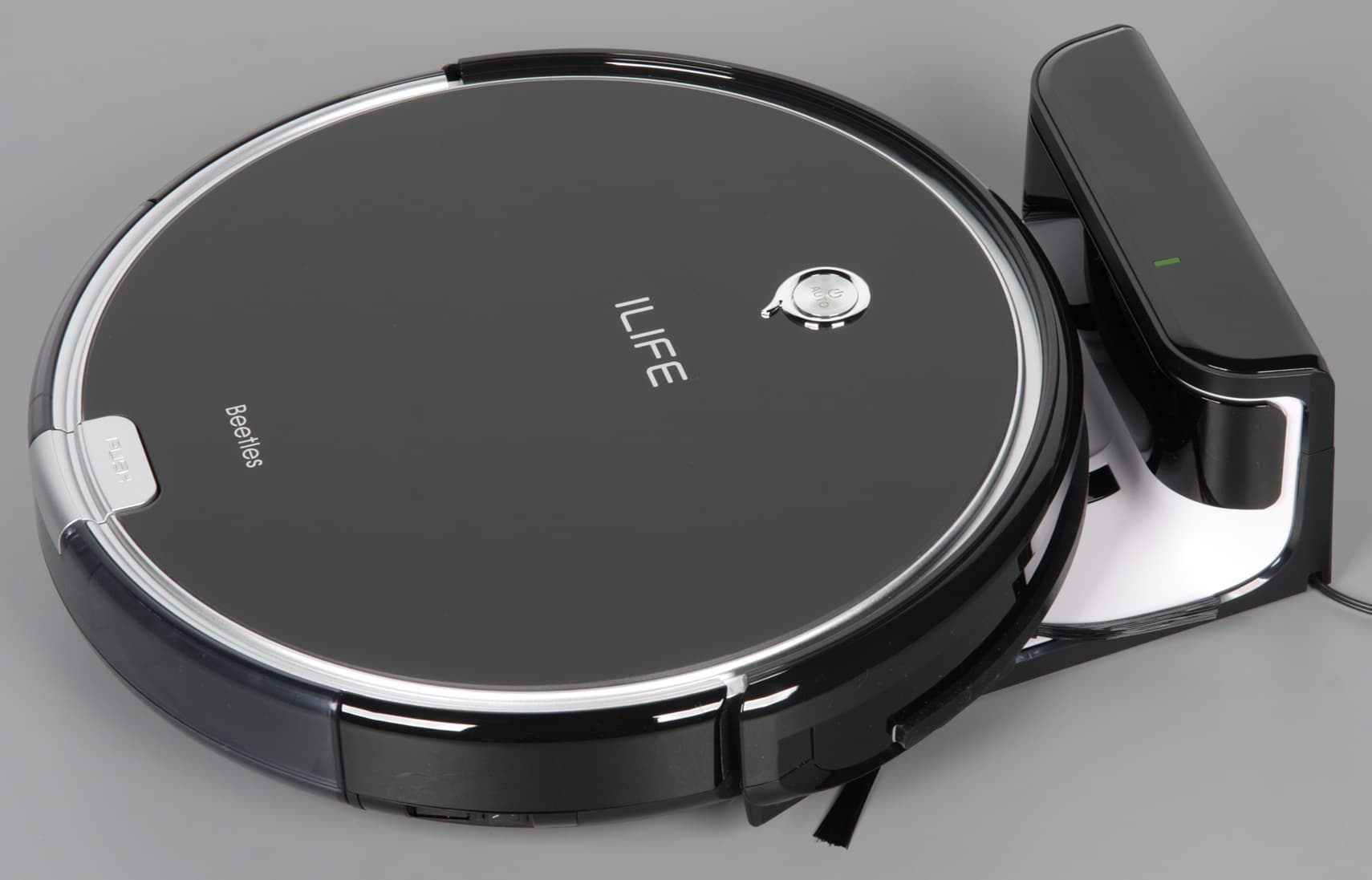 В автоматическом режиме iLife A6 убирает, меняя алгоритм движения, и сам возвращается на базу для зарядки аккумулятора. При необходимости пользователь может вручную управлять движением робота, включать режимы интенсивной очистки локального участка, уборки в небольшой комнате или следования вдоль стен, также робота можно запрограммировать на ежедневную уборку в заданное время. К особенностям робота относятся безворсовая щетка-скребок, на которую должны в меньшей степени наматываться волосы, шерсть, нитки и пр., поэтому данного уборщика можно рекомендовать при наличии шерстистых домашних животных. Верхняя панель из закаленного стекла относится к спорным решениям, но элементом дизайна, выделяющим робота, она определенно является.