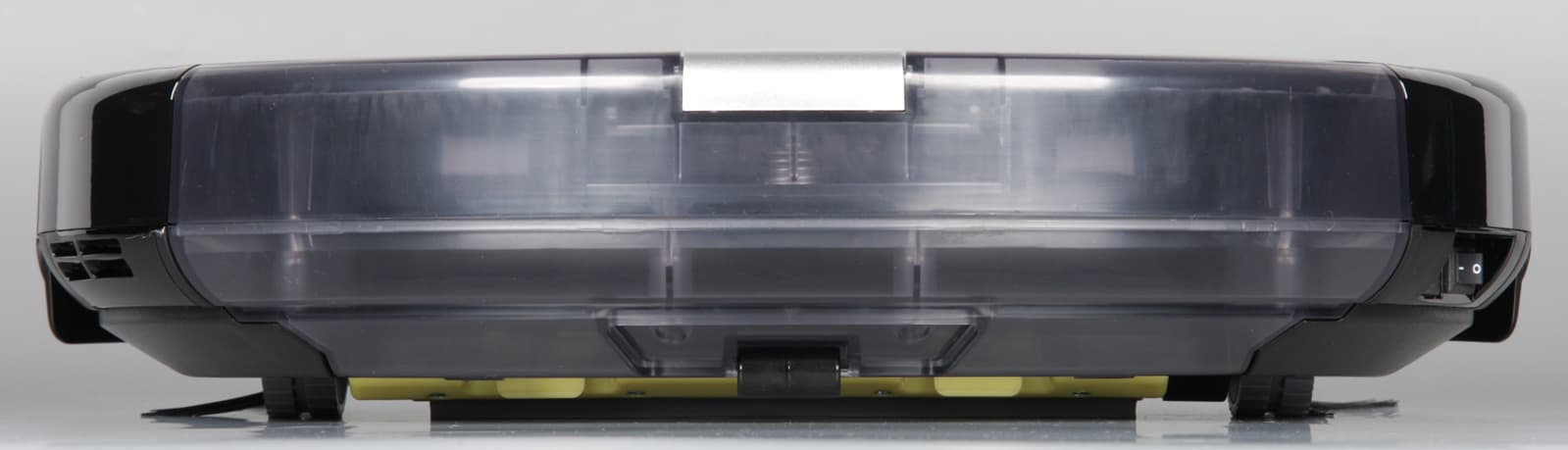 Корпус пылесборника выполнен из слегка тонированного полупрозрачного пластика, но особой пользы это не приносит, так как взглянуть на него можно только или перевернув пылесос днищем вверх или вынув пылесборник. Передняя часть пылесборника откидывается на большой угол, что позволяет без труда вытряхнуть скопившийся мусор. Однако отсек для мусора относительно узкий и его будет неудобно чистить с помощью обычного пылесоса с щелевой насадкой, также передняя перегородка на откидывающейся части невысокая, поэтому мусор легко просыпается из закрытого пылесборника. Именно высота этой перегородки ограничивает полезную емкость пылесборника по отношению к тяжелому мусору.