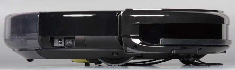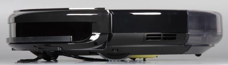 Корпус робота изготовлен в основном из черного пластика без покрытия. Верхняя половина корпуса имеет зеркально-гладкую не устойчивую к повреждениям и маркую поверхность, а нижняя — с более практичной матовой поверхностью. Преимущественно темный цвет корпуса осложняет поиск робота в темных закоулках квартиры, когда он по какой-то причине не вернется на базу, также робота сложнее заметить боковым зрением, когда он путается под ногами, а значит, с большей вероятностью на него можно наступить. Верхняя панель прикрыта пластиной из минерального закаленного стекла, поэтому она не царапается и легко очищается. Ободок сверху по периметру имеет серебристое покрытие. На верхней панели ближе к передней части есть единственная механическая кнопка с подсвечивающимися словом Auto и значком питания.