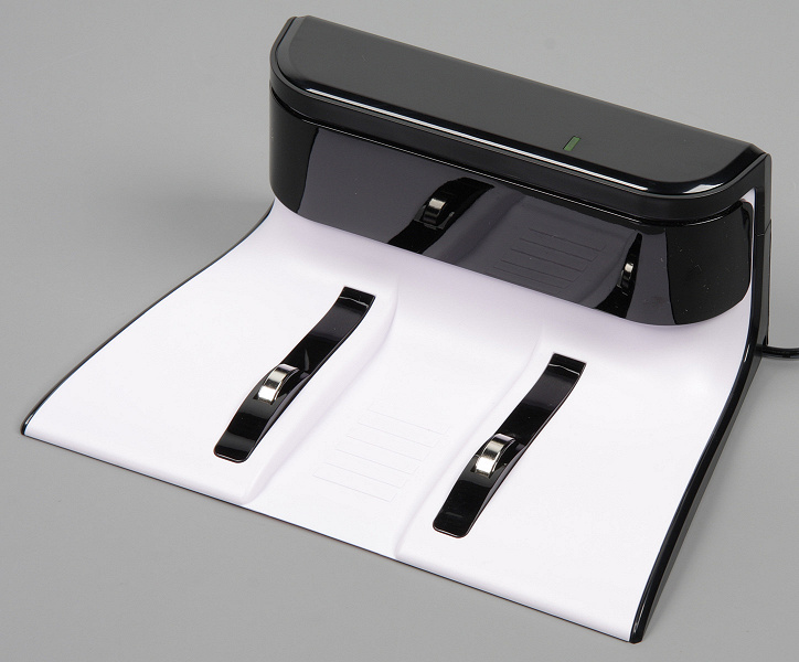 Питается база от внешнего адаптера питания, который также можно использовать для зарядки робота, минуя базу, если по какой-то причине она недоступна. Кабель можно уложить в каналы на днище базы и вывести на правую или на левую сторону. Длина кабеля от адаптера равна 1,5 м.