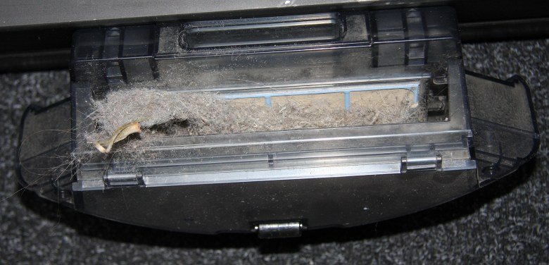 Нажав на фиксатор сзади, можно отсоединить пылесборник от корпуса робота.