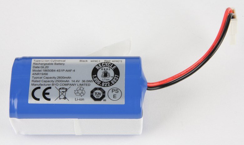 В данном роботе установлена литий-ионная аккумуляторная батарея. Батарейный блок составлен из четырех цилиндрических элементов популярного типоразмера 18650.
