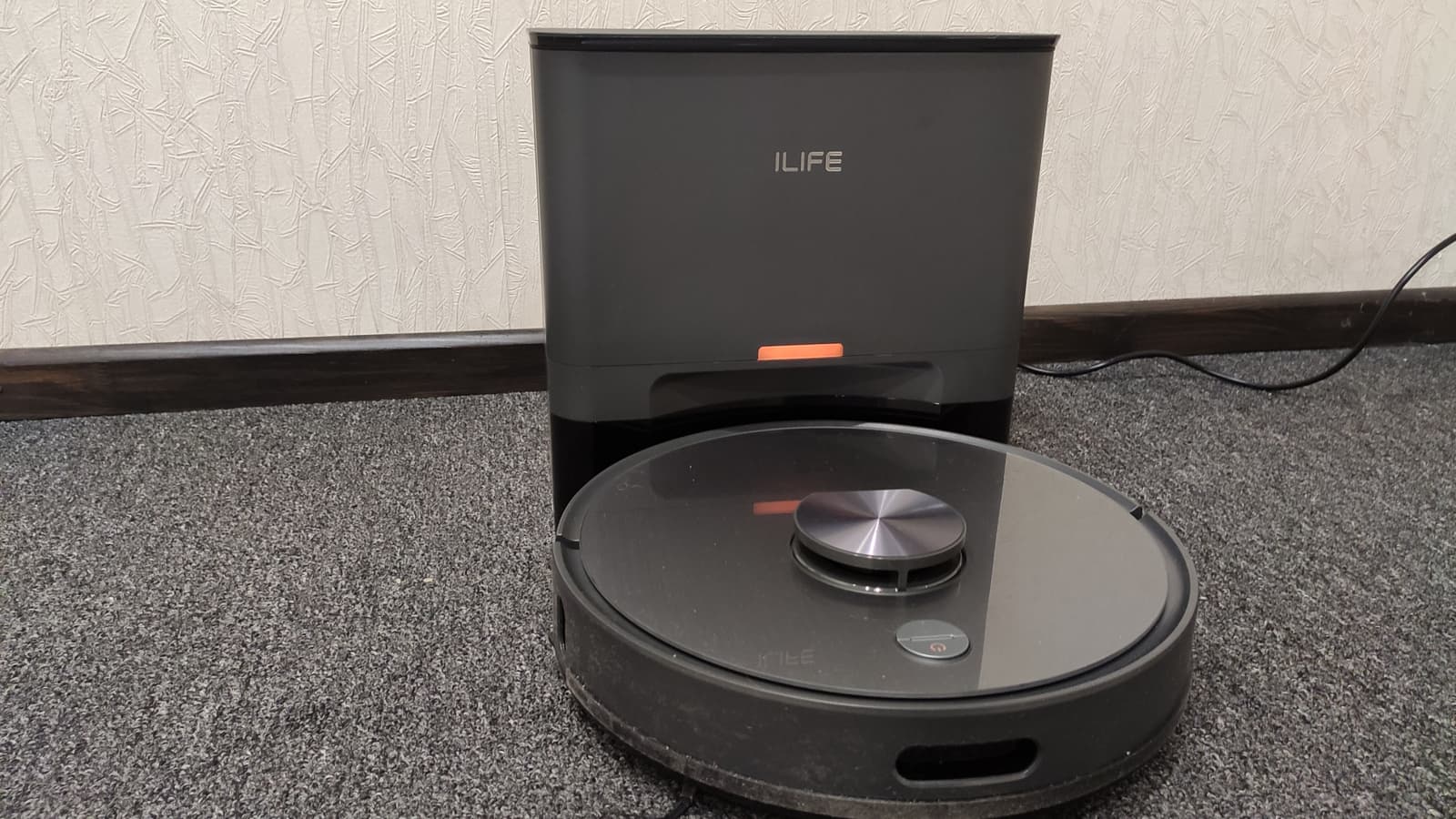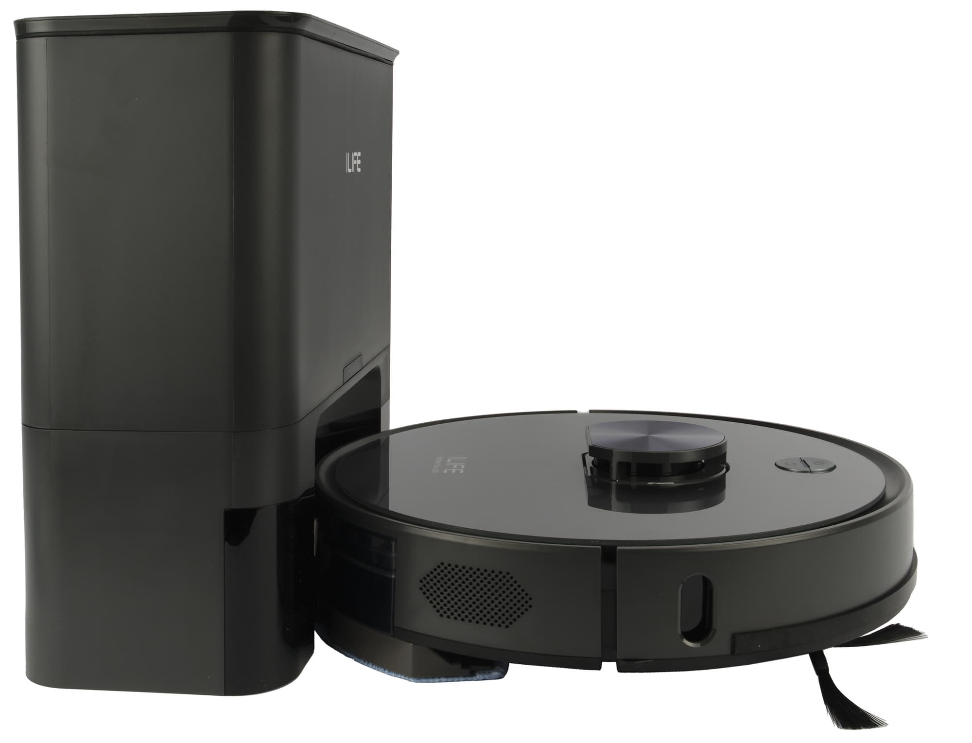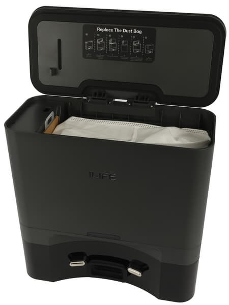 Процесс самоочистки занимает около 20 секунд. Звук работы устройства при этом значительно усиливается: внутри базы размещается весьма мощный, а, значит, и гораздо более громкий электродвигатель.