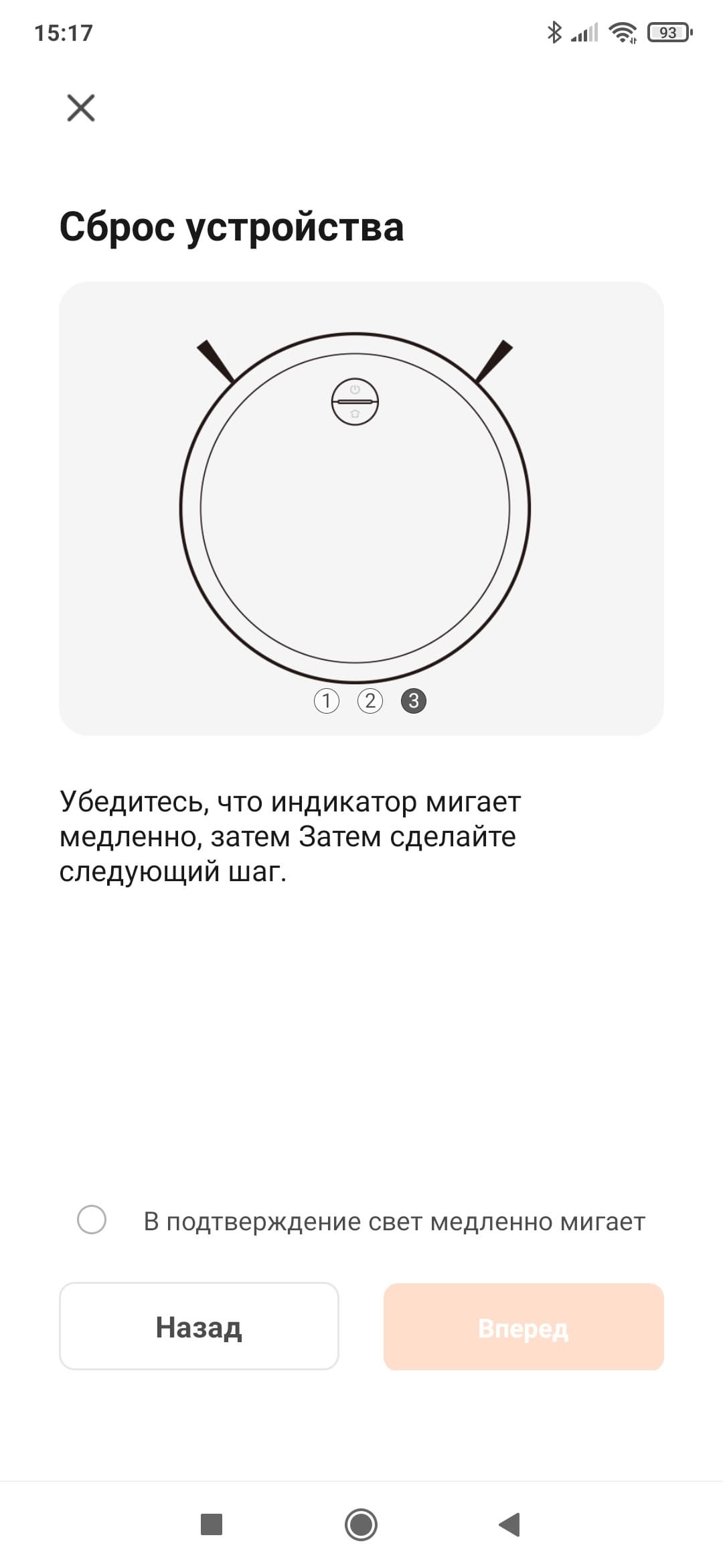 После этого приложение запрашивает SSID и пароль от беспроводной сети и выдает инструкции, как подготовить робота к подключению.