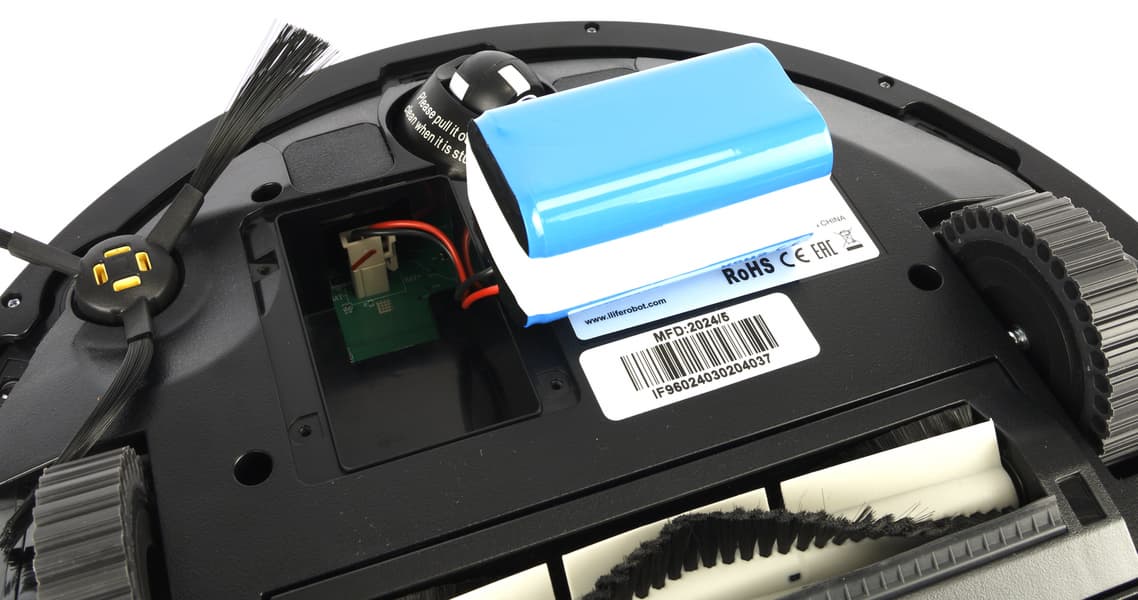 Как быстро падает уровень заряда батареи? В нашем тестовом помещении (с ковролиновым покрытием) уборка на максимальной мощности в течении 8 минут 20 секунд снизила заряд аккумулятора на 14%.