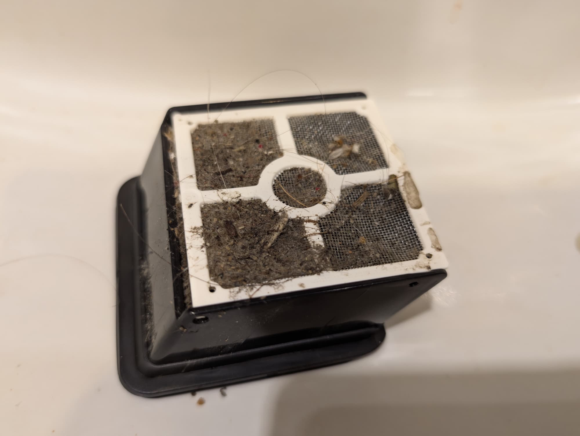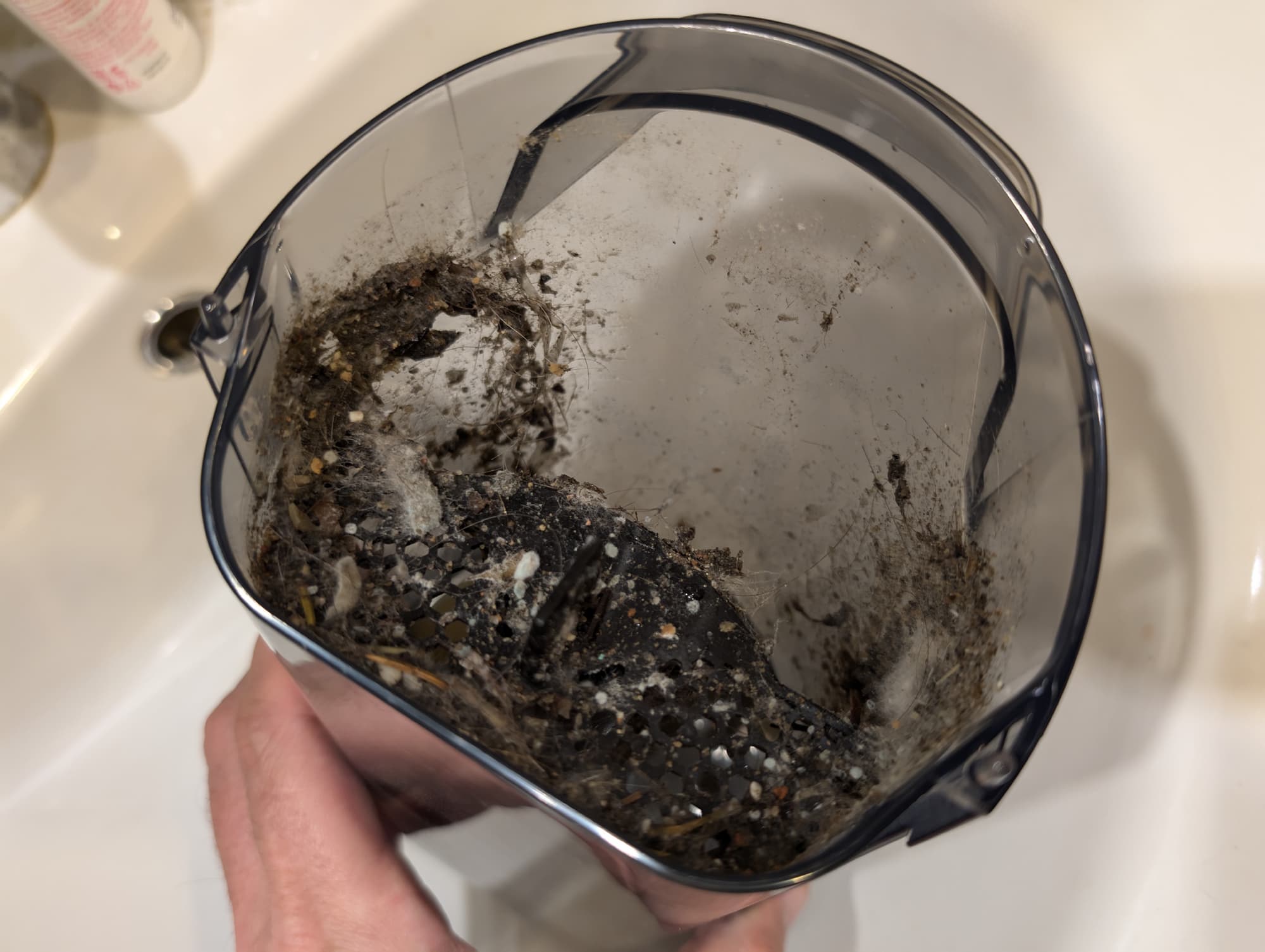 Некоторая часть мусора остается и на моющемся сетчатом фильтре: его, как и поролоновую губку под ним, следует промывать после каждого опорожнения резервуара.