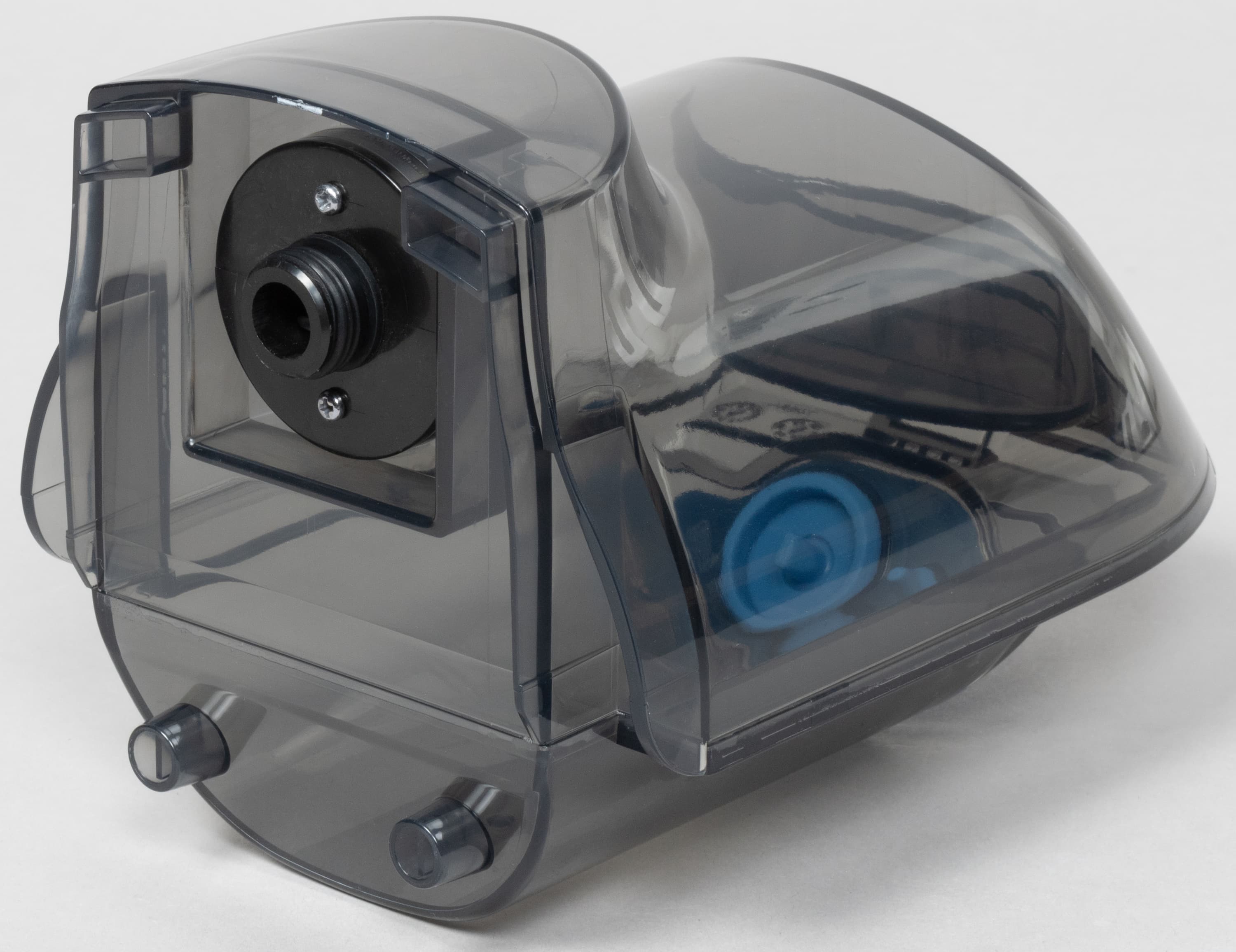 Уровень жидкости в резервуаре аквафильтра хорошо виден, но надобности в его контроле нет: устройство само сообщит пользователю, когда сработает датчик переполнения емкости.
