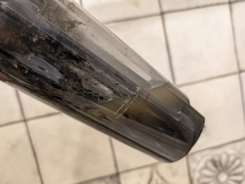 Вес пылесоса с пустыми резервуарами равен 4540 г. Емкость для чистой воды, заполненная «под пробку», вмещает 580 мл. Таким образом, общая масса заправленного и готового к работе устройства составляет 5120 г.