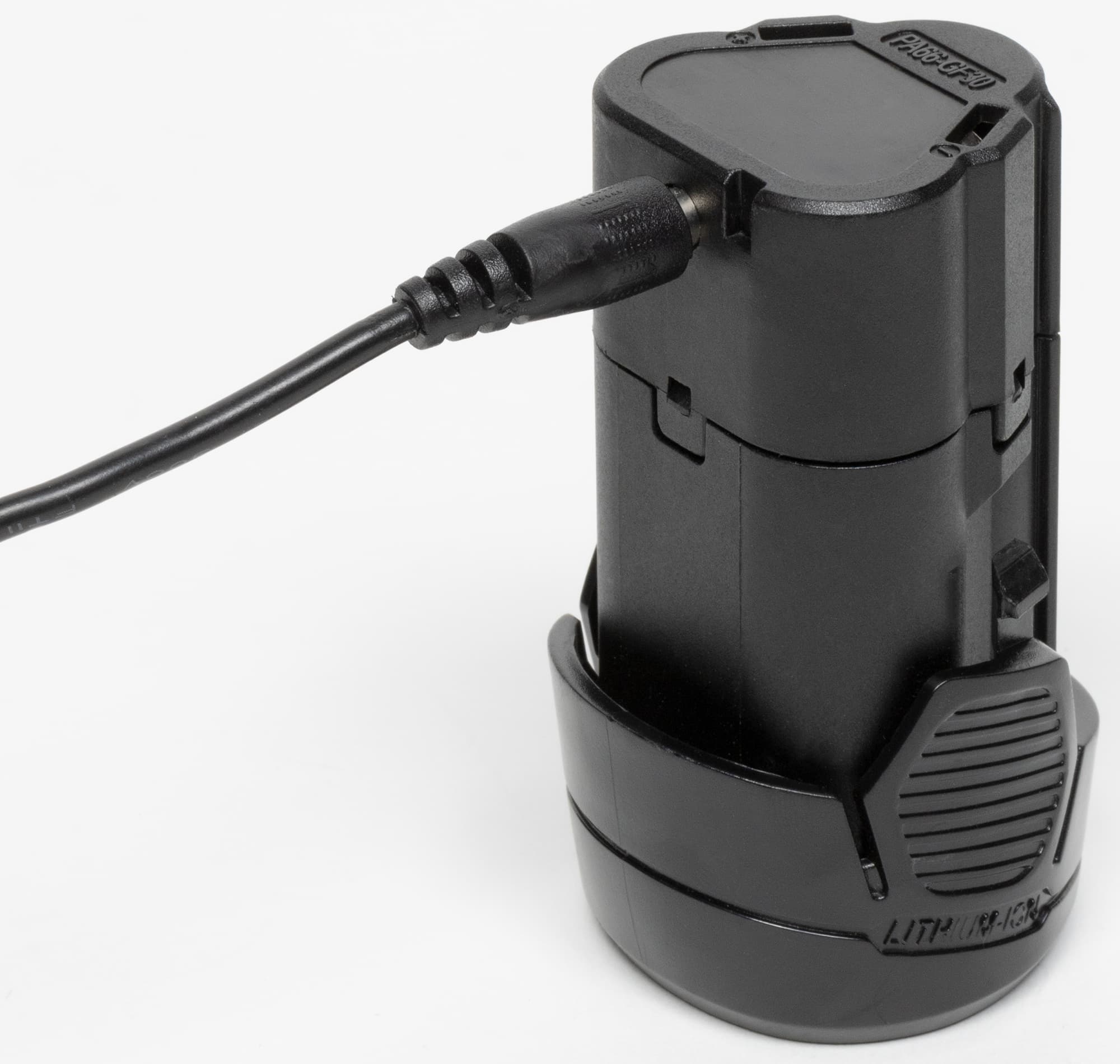 Аккумулятор имеет встроенный разъем для зарядки, в который вставляется штекер адаптера. Во время зарядки светодиод адаптера светится красным цветом, по завершении зарядки цвет меняется на зеленый. Зарядка аккумулятора длится 80 минут. Долгонько. Но уж как есть.