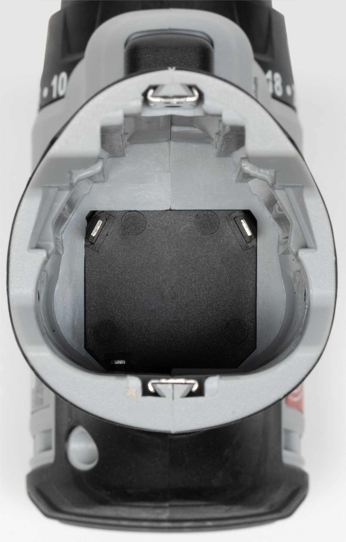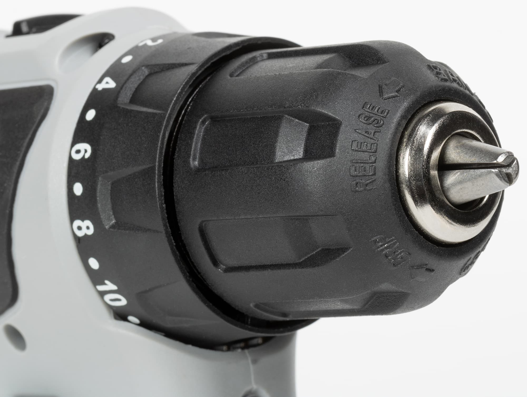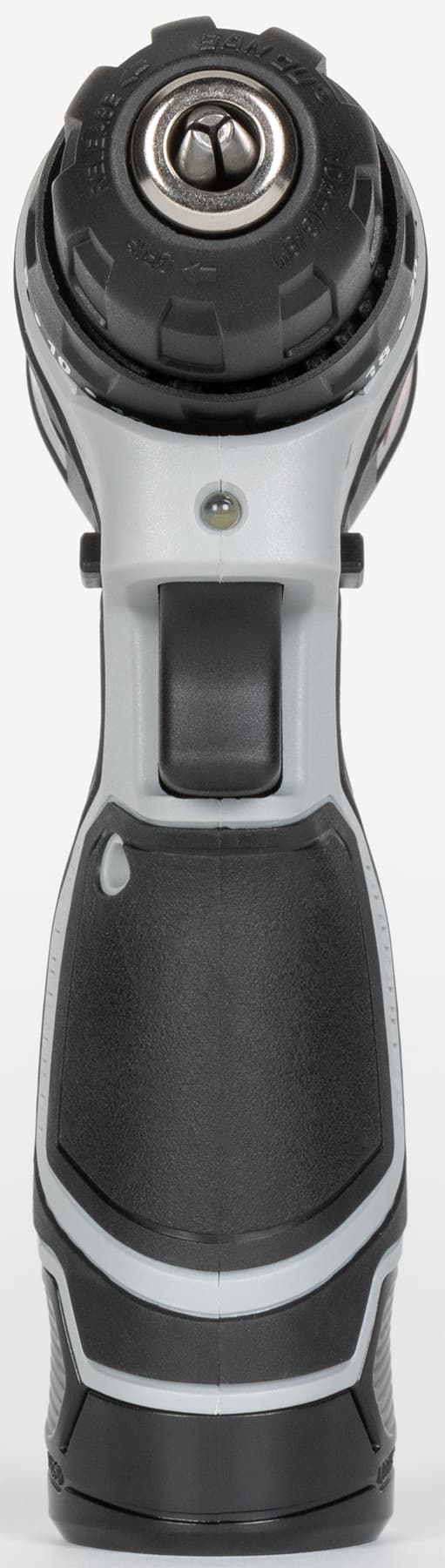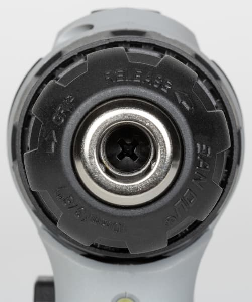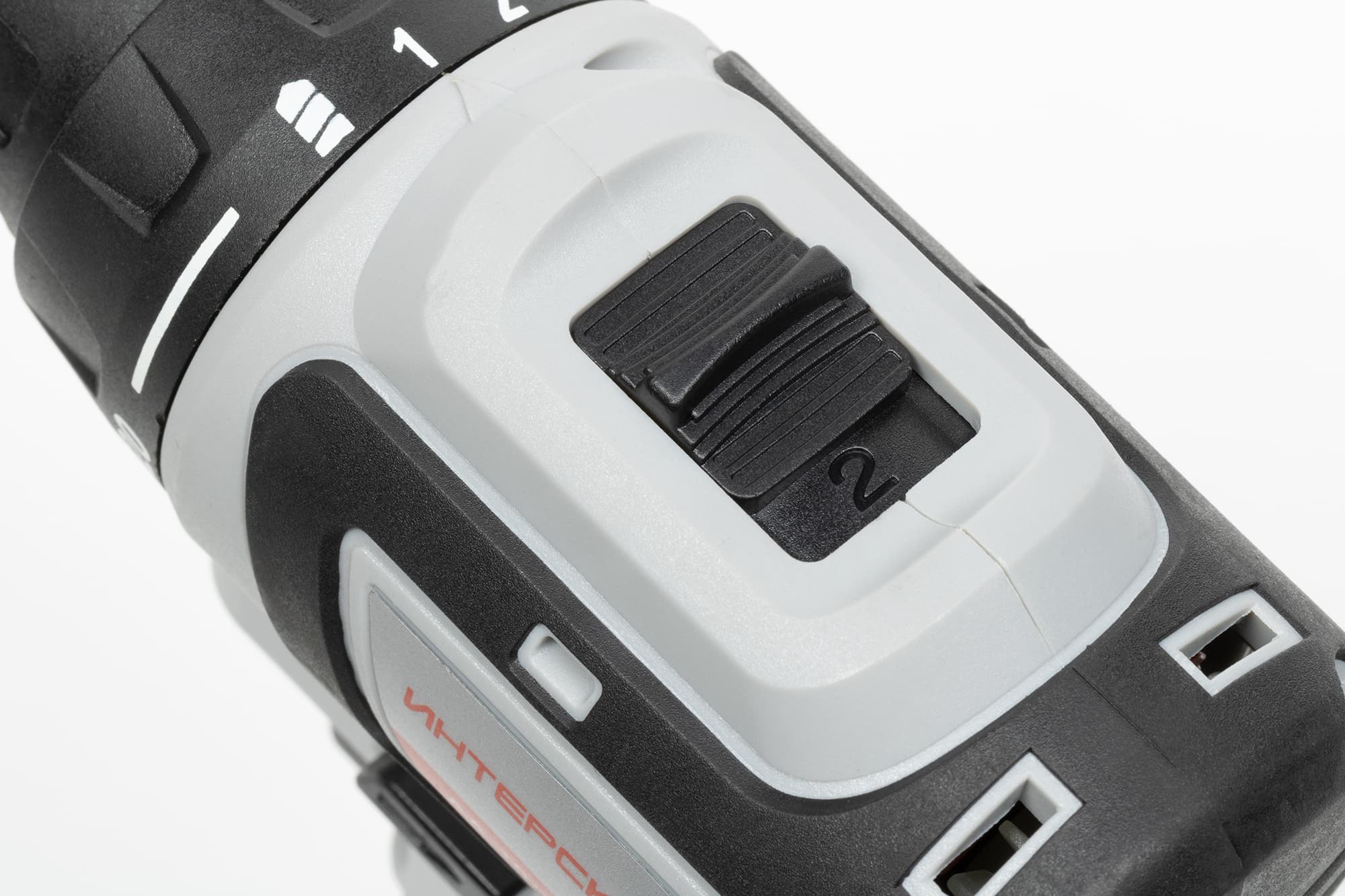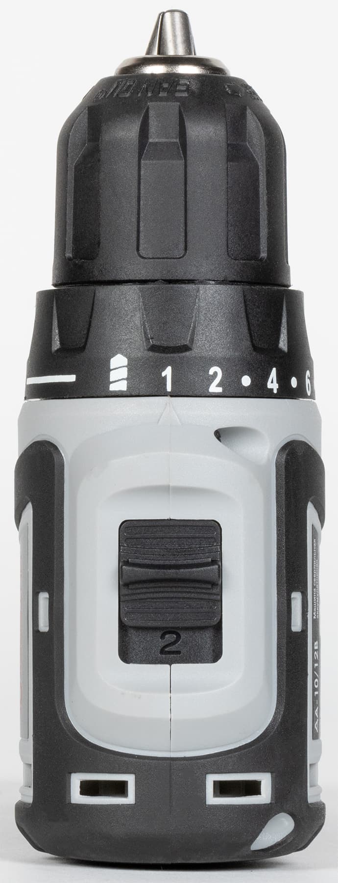 Кольцо выбора усилия регулирует крутящий момент, каждое из 20 делений фиксируется с выраженным щелчком. Последнее деление — это традиционный режим сверления, когда редуктор не задействуется и «трещотка» отключается. Диапазоны скоростей переключаются стандартным ползунком, расположенным сверху.