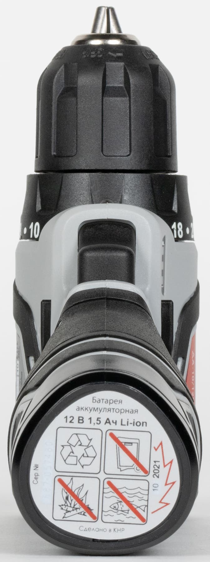 Шуруповерт снабжен двумя аккумуляторами емкостью 1500 мА·ч (18 Вт·ч) с напряжением 12 В. Индикаторов остатка заряда на аккумуляторах не имеется. Но их прекрасно заменяют индикаторы, расположенные в корпусе шуруповерта. Кстати, удивительно точные индикаторы.