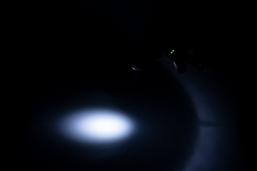 Под патроном находится светодиод-фонарик. Он очень яркий. Даже, кажется, чересчур (но кашу маслом не испортишь). Им вполне можно освещать дорогу в полной темноте. Более того, даже если вы отпустили рычаг пуска двигателя, фонарик этот продолжает светиться целых 15 секунд! Этого времени хватит, чтобы выбраться из самого темного угла.
