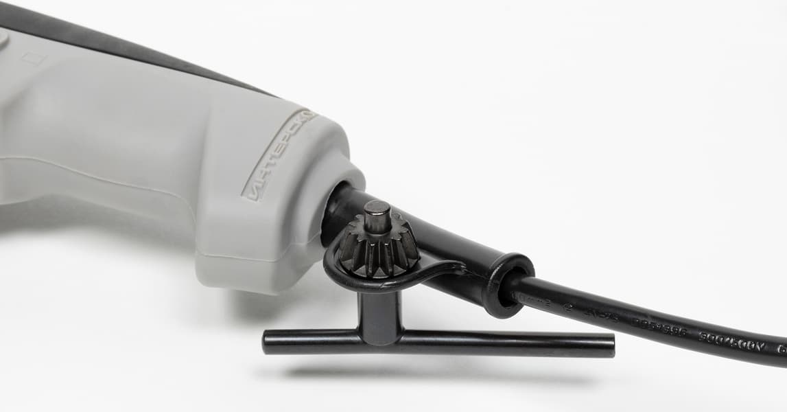 У этой дрели имеется ушко для продевания и хранения патронного ключа. Любой владелец наверняка оценит такую мелочь по достоинству. По крайней мере тот, который не станет по привычке приматывать ключ к проводу, рядом с вилкой.